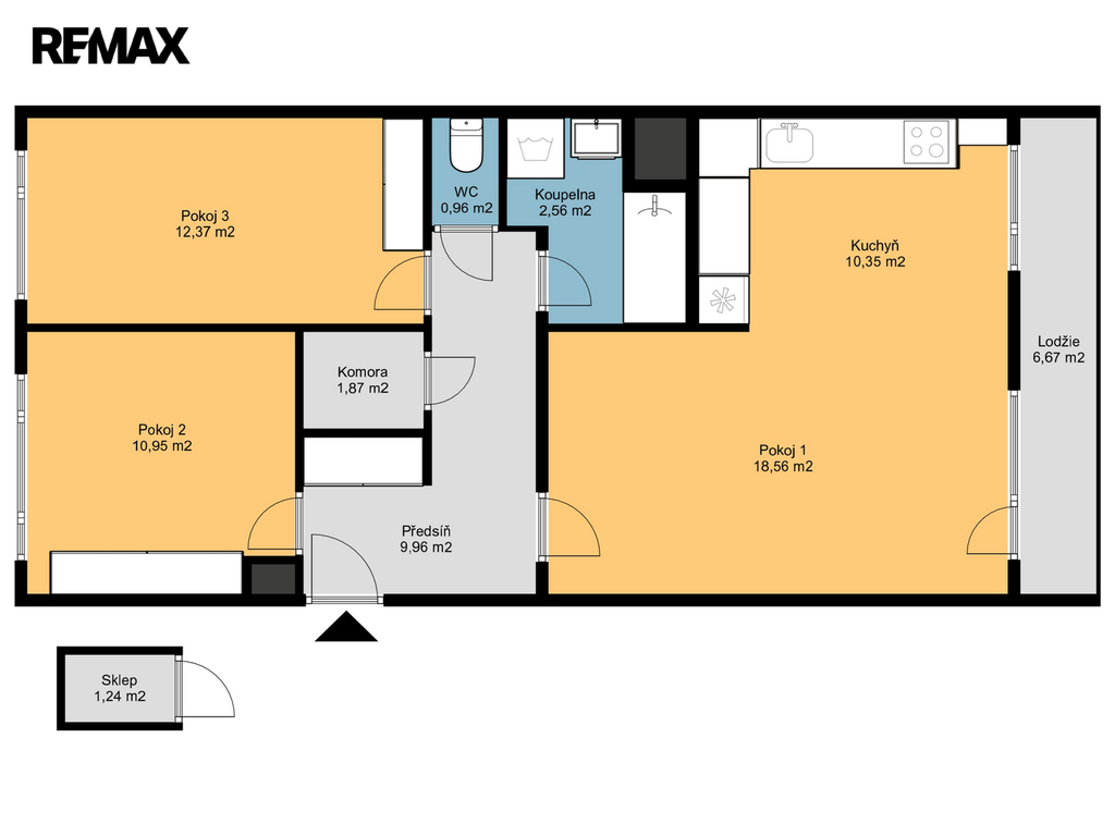 - Dispozice bytu: 3+kk