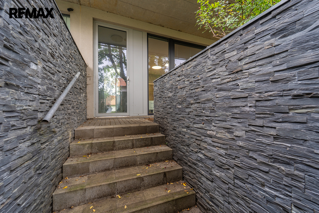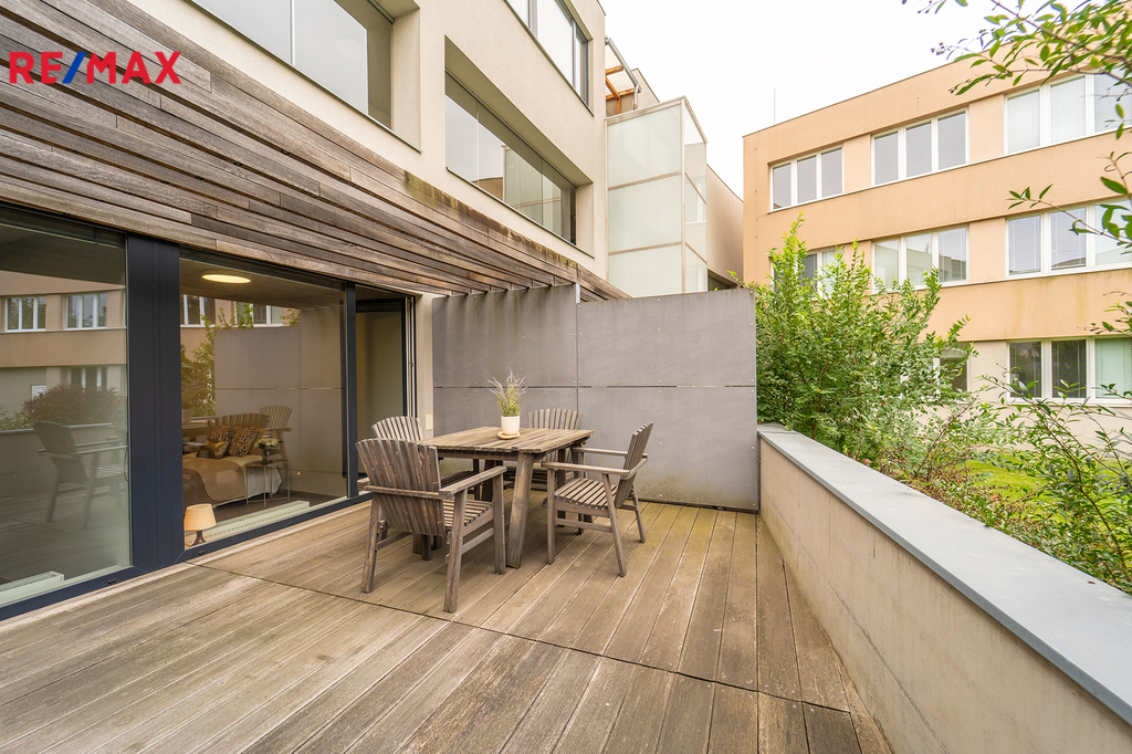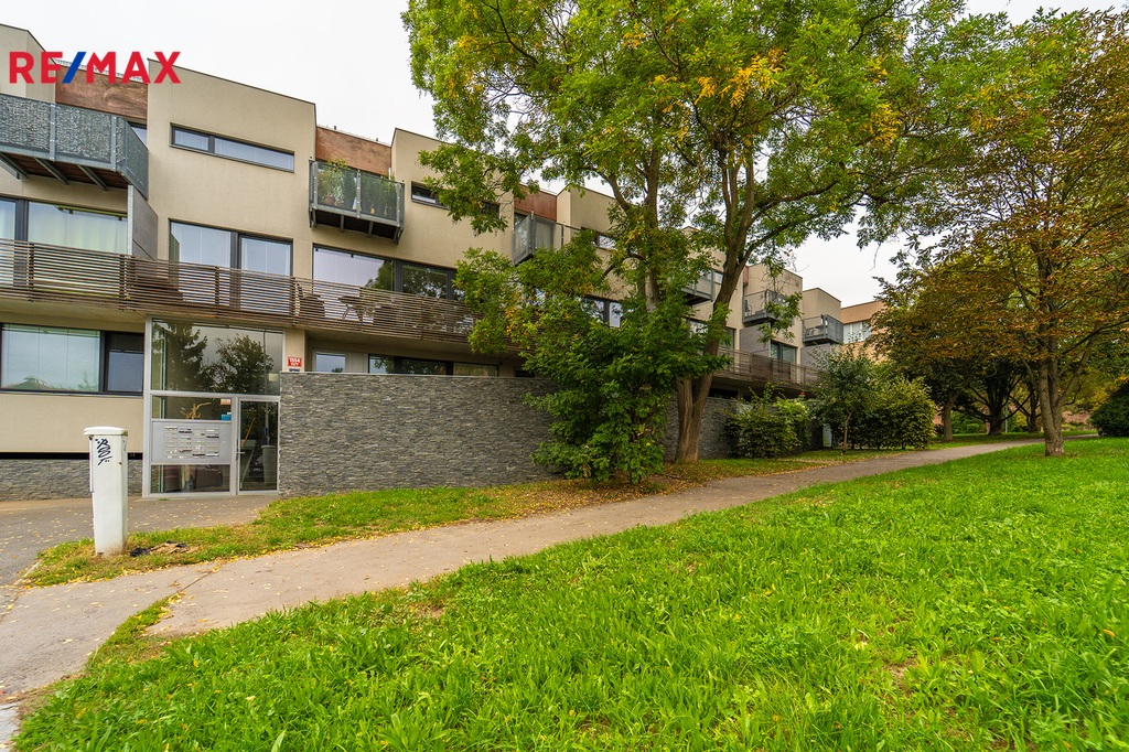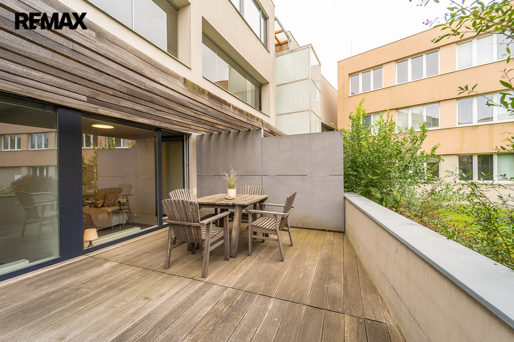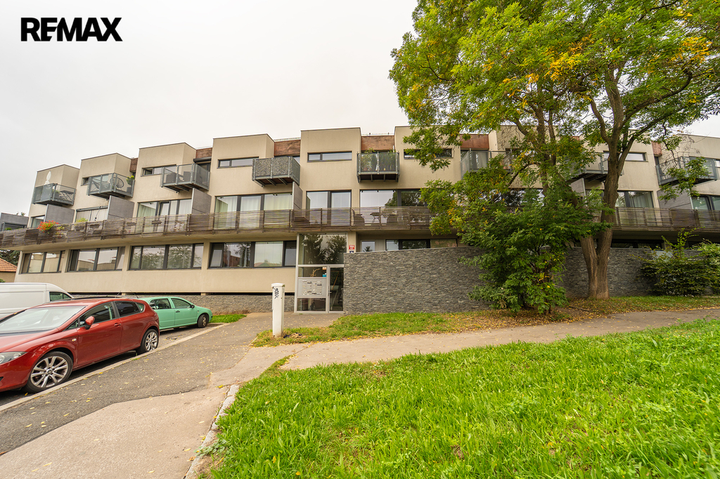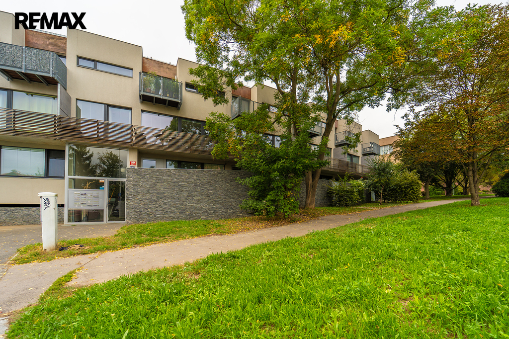 Nabízíme Vám ke koupi bytovou jednotku v perfektním stavu o celkové užitné ploše 65,6 m2 + soukromá předzahrádka o velikosti 29m2 + uzavřená terasa o velikosti 19,1 m2 + sklepní kóje 0,8 m2 a privátní garážové parkovací stání s vlastním vchodem do bytu přes předzahrádku. Byt, nacházející se v 1. nadzemním podlaží skeletového domu, se skládá z obývacího pokoje s kuchyňským koutem se vstupem na předzahrádku, dvou ložnic se vstupem na terasu, předsíně, koupelny, toalety a chodby.