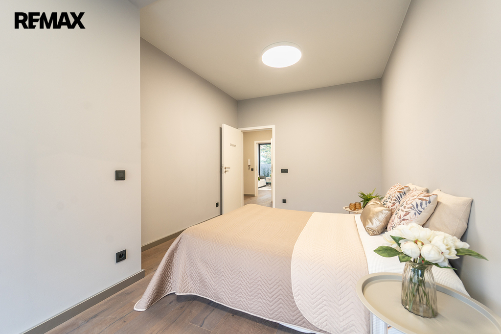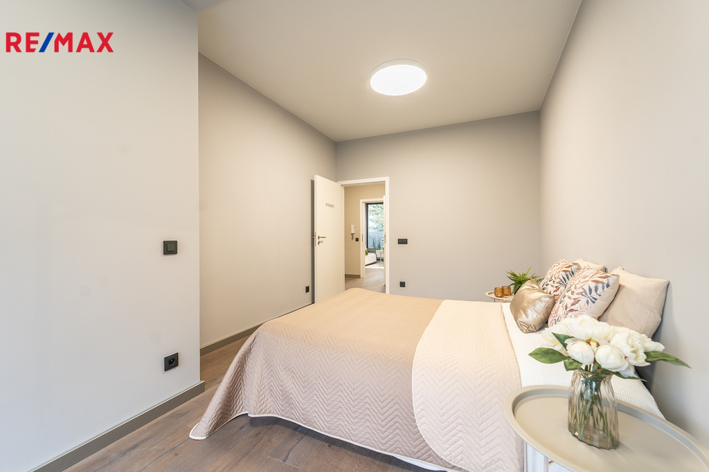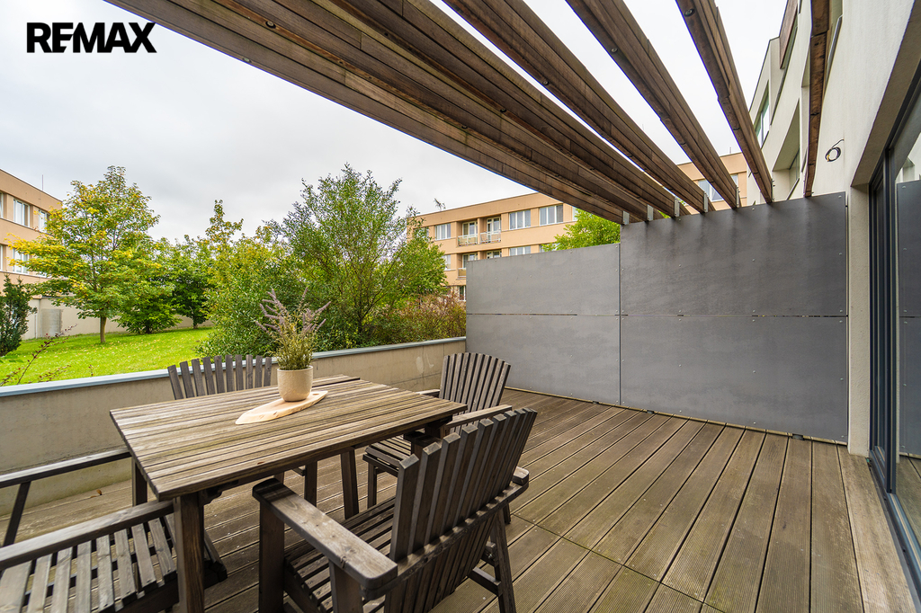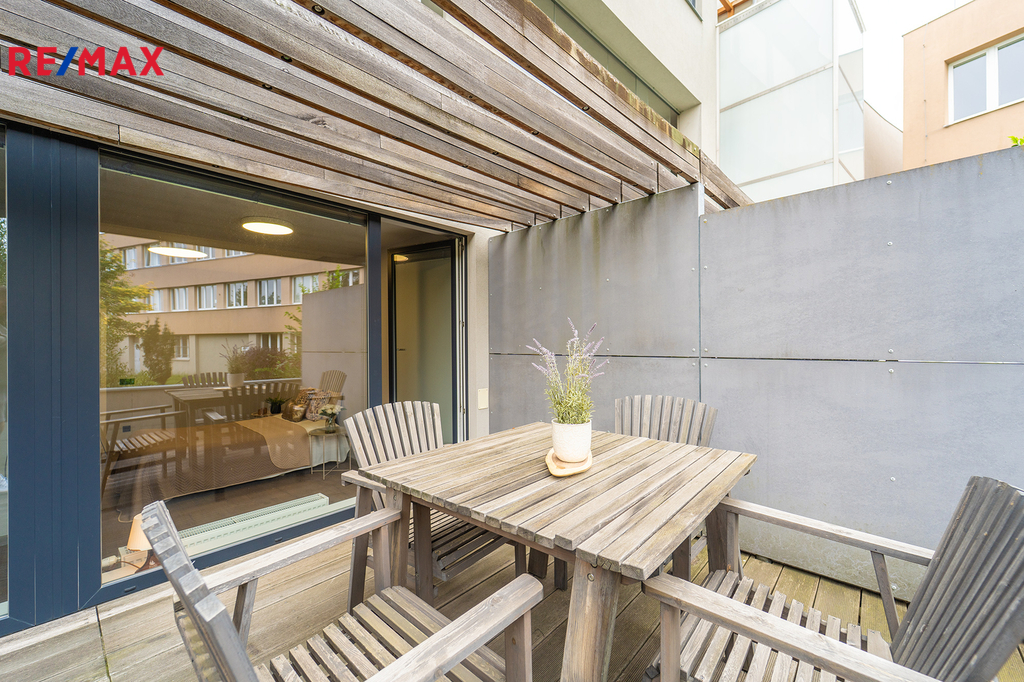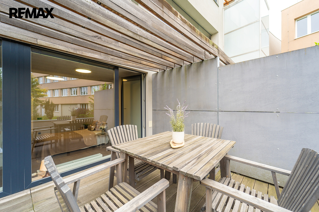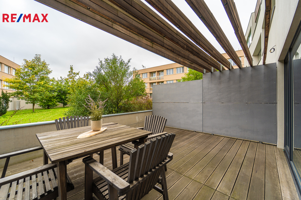 Nabízíme Vám ke koupi bytovou jednotku v perfektním stavu o celkové užitné ploše 65,6 m2 + soukromá předzahrádka o velikosti 29m2 + uzavřená terasa o velikosti 19,1 m2 + sklepní kóje 0,8 m2 a privátní garážové parkovací stání s vlastním vchodem do bytu přes předzahrádku. Byt, nacházející se v 1. nadzemním podlaží skeletového domu, se skládá z obývacího pokoje s kuchyňským koutem se vstupem na předzahrádku, dvou ložnic se vstupem na terasu, předsíně, koupelny, toalety a chodby.