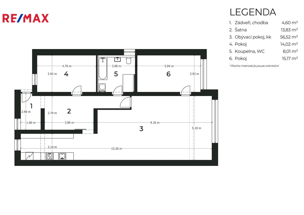 - Dispozice bytu: 3+kk