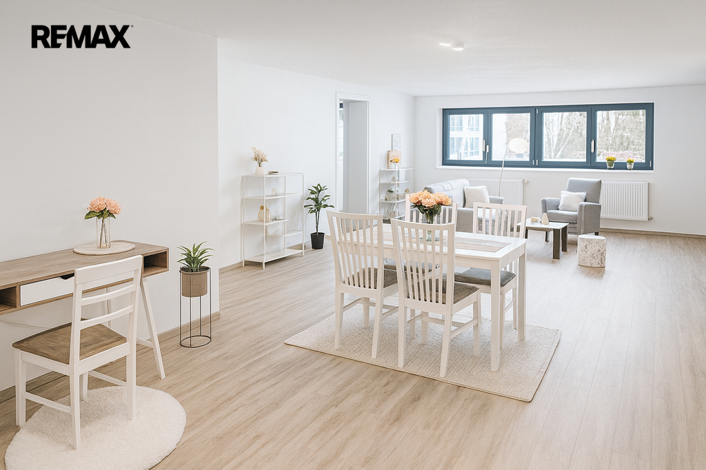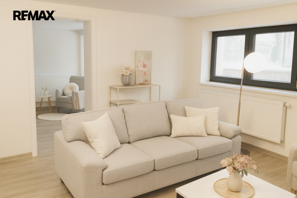 Díky vlastnímu vstupu a velké ploše je tak byt ideální nejen pro bydlení, ale také pro kombinaci bydlení a práce z domova – například jako studio, terapeutická praxe nebo klidná kancelář.