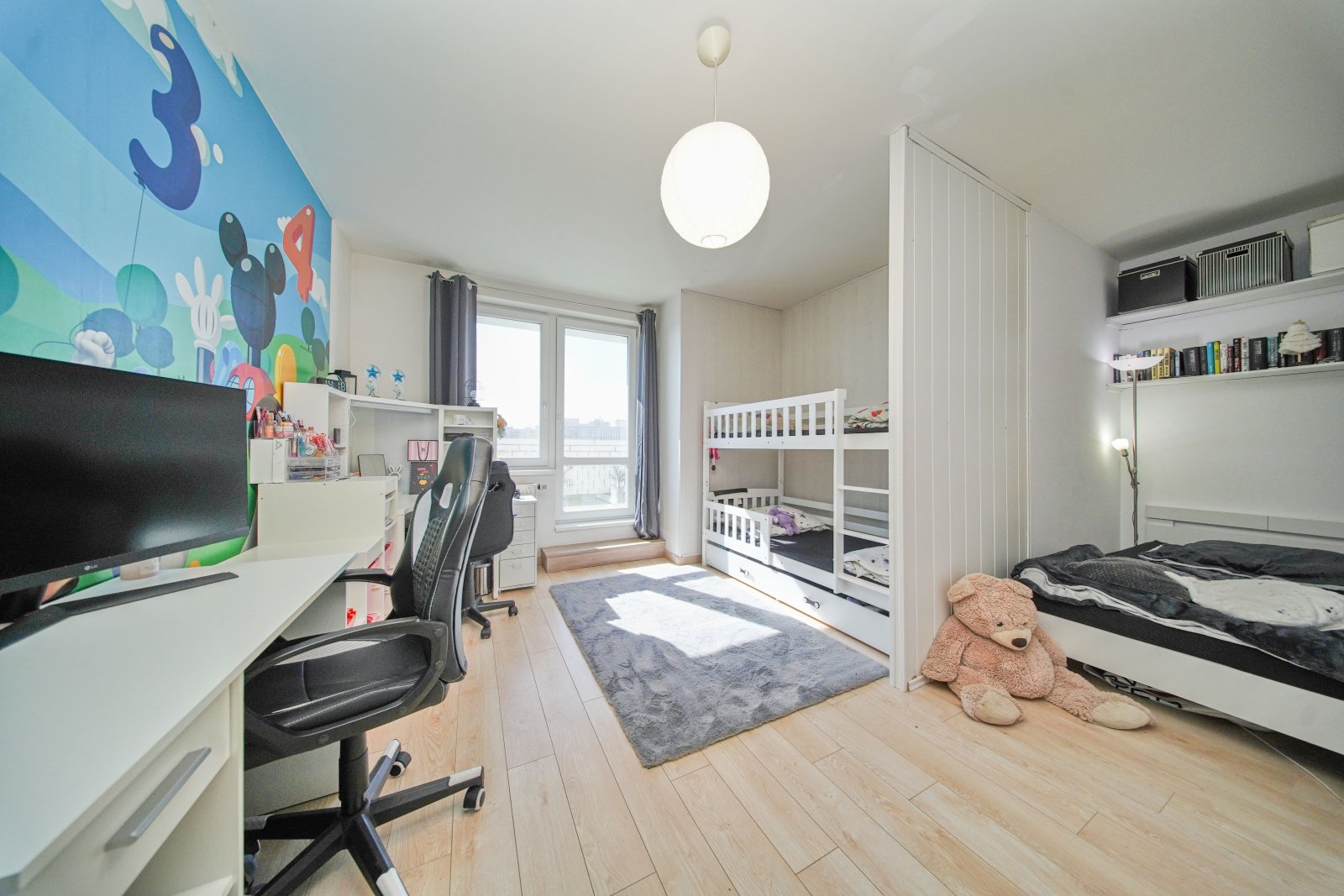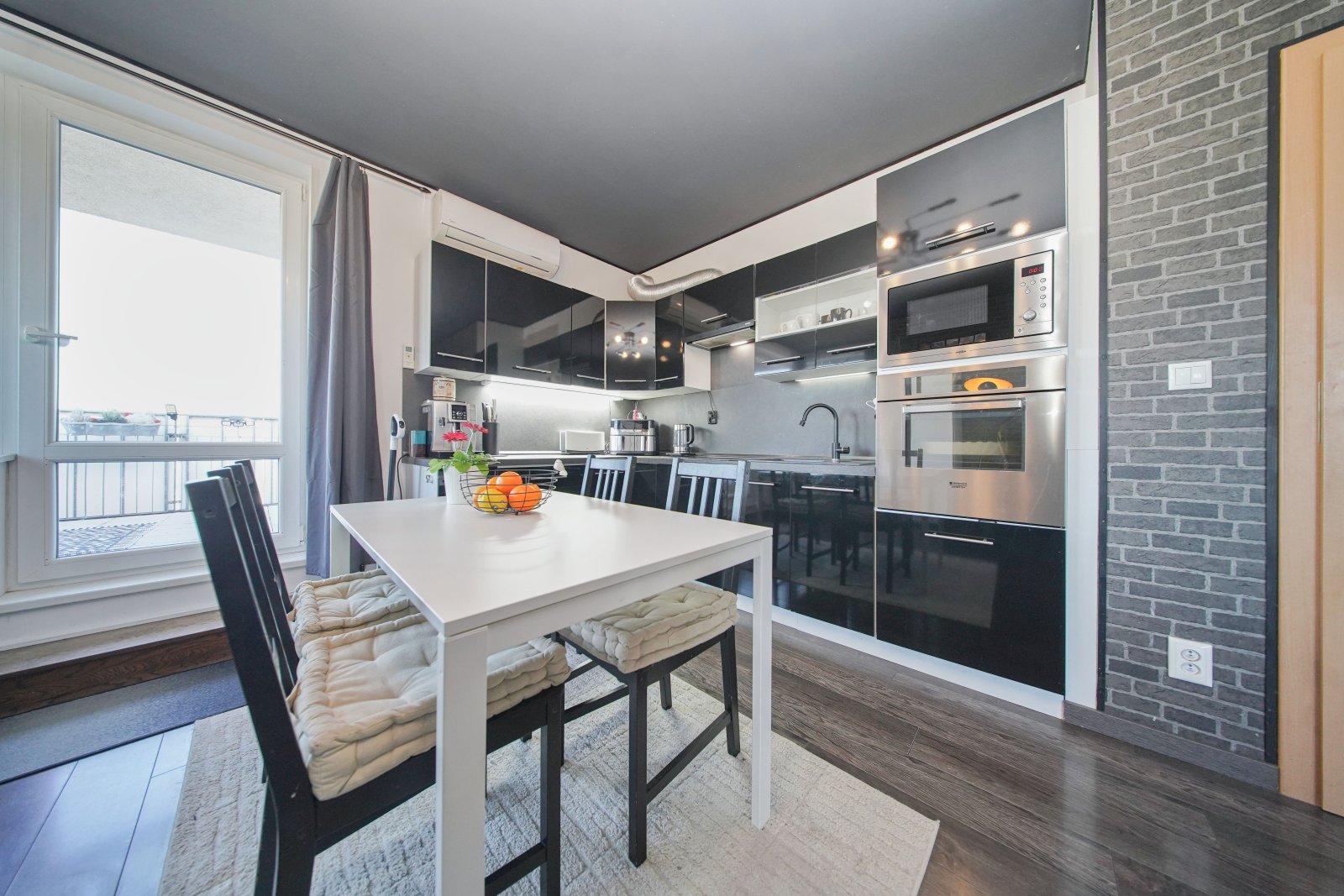 V bytě plastová okna, plovoucí podlahy, klimatizace v obývacím pokoji a kuchyňském koutu. Kuchyně včetně spotřebičů, koupelna s vanou, umyvadlem, topným žebříkem a přípojkou pro pračku, samostatná toaleta. Vestavěné skříně v předsíni. Vytápění a ohřev vody ústřední dálkové.