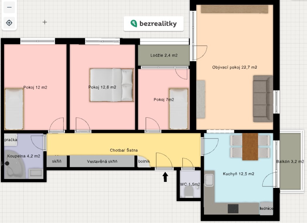 - Lodžie: 3 m²