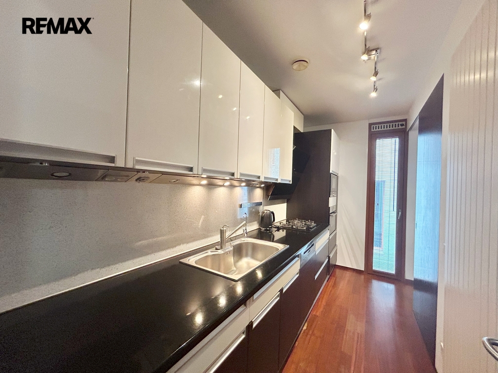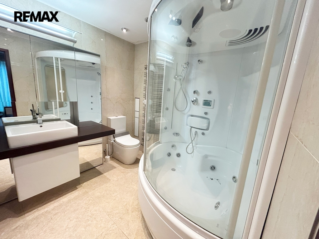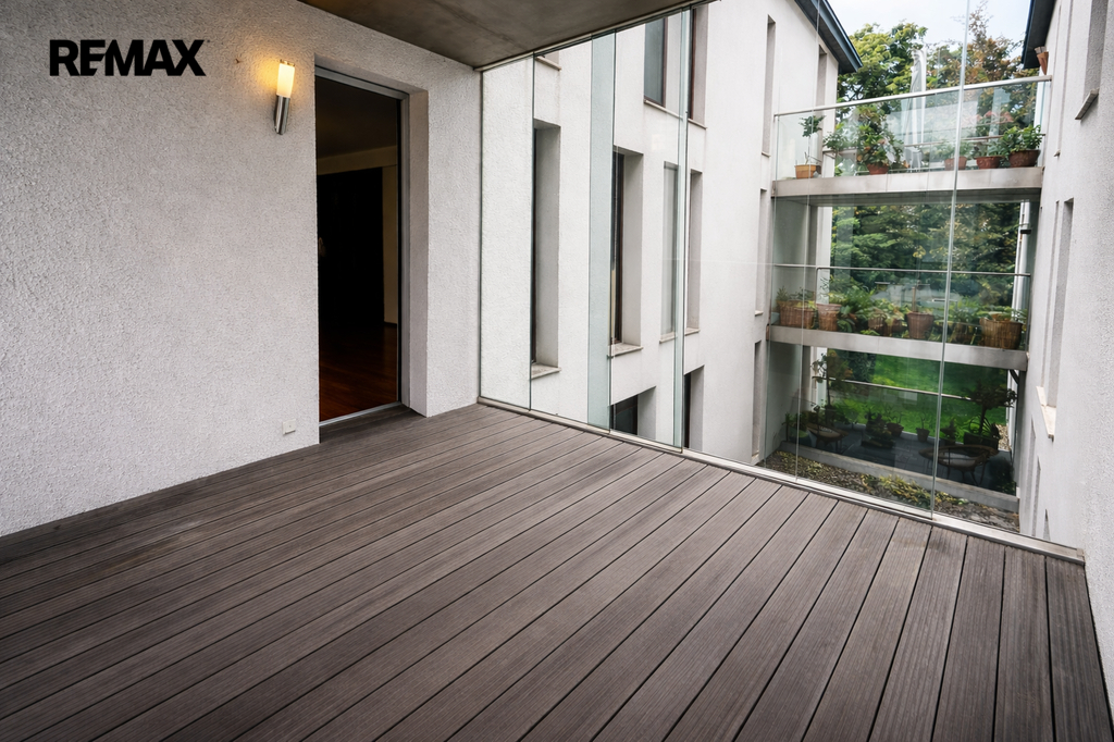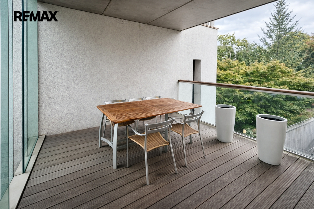 Jednotka o obytné ploše 165 m2 + 15 m2 balkon sestává ze vstupní haly s vestavenou skříní, kuchyně s jídelnou, prostorného obývacího pokoje, tří pokojů, koupelny s vanou a WC, koupelny se sprchovým koutem a WC, samostatného WC a dvou šaten a technické místnosti. K bytu náleží sklep o velikosti 12 m2, který není součástí výměry bytu a dvě garážová stání.