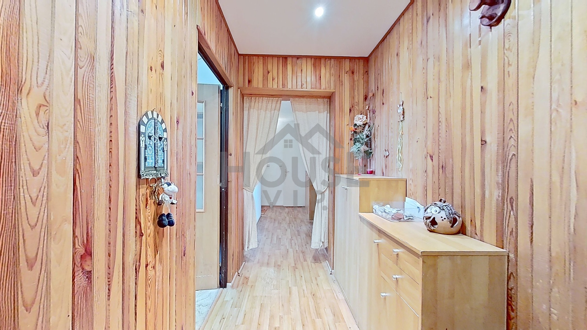 Dispozičně je řešen praktickou centrální chodbou, ze které vedou samostatné vstupy do všech pokojů. Severozápadní část bytu tvoří dva neprůchozí pokoje a kuchyň s jídelním koutem, která je vybavena kuchyňskou linkou a všemi spotřebiči (myčka, varná deska, trouba, mikrovlnná trouba, lednice s mrazákem). Jihozápadní část bytu zahrnuje další dva pokoje, přičemž jeden z nich má vstup na lodžii s výhledem do parku Panská zahrada.
