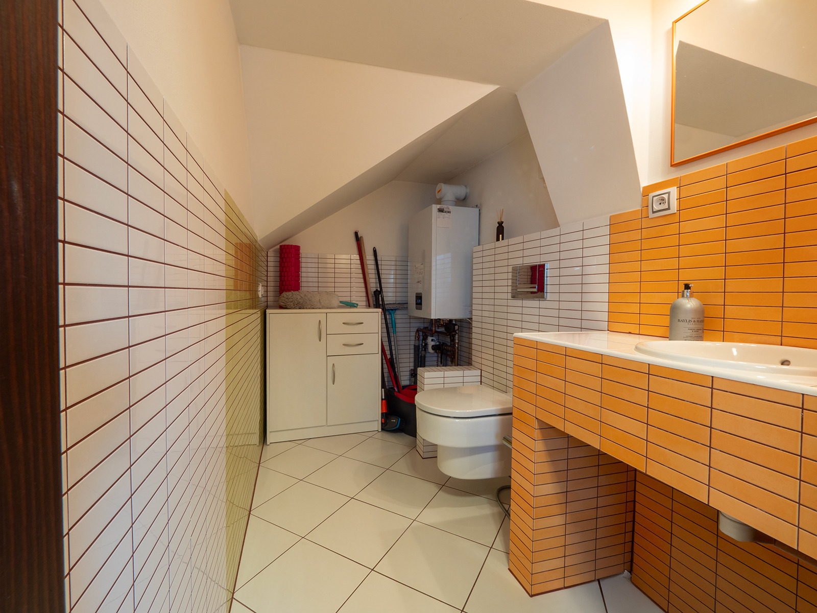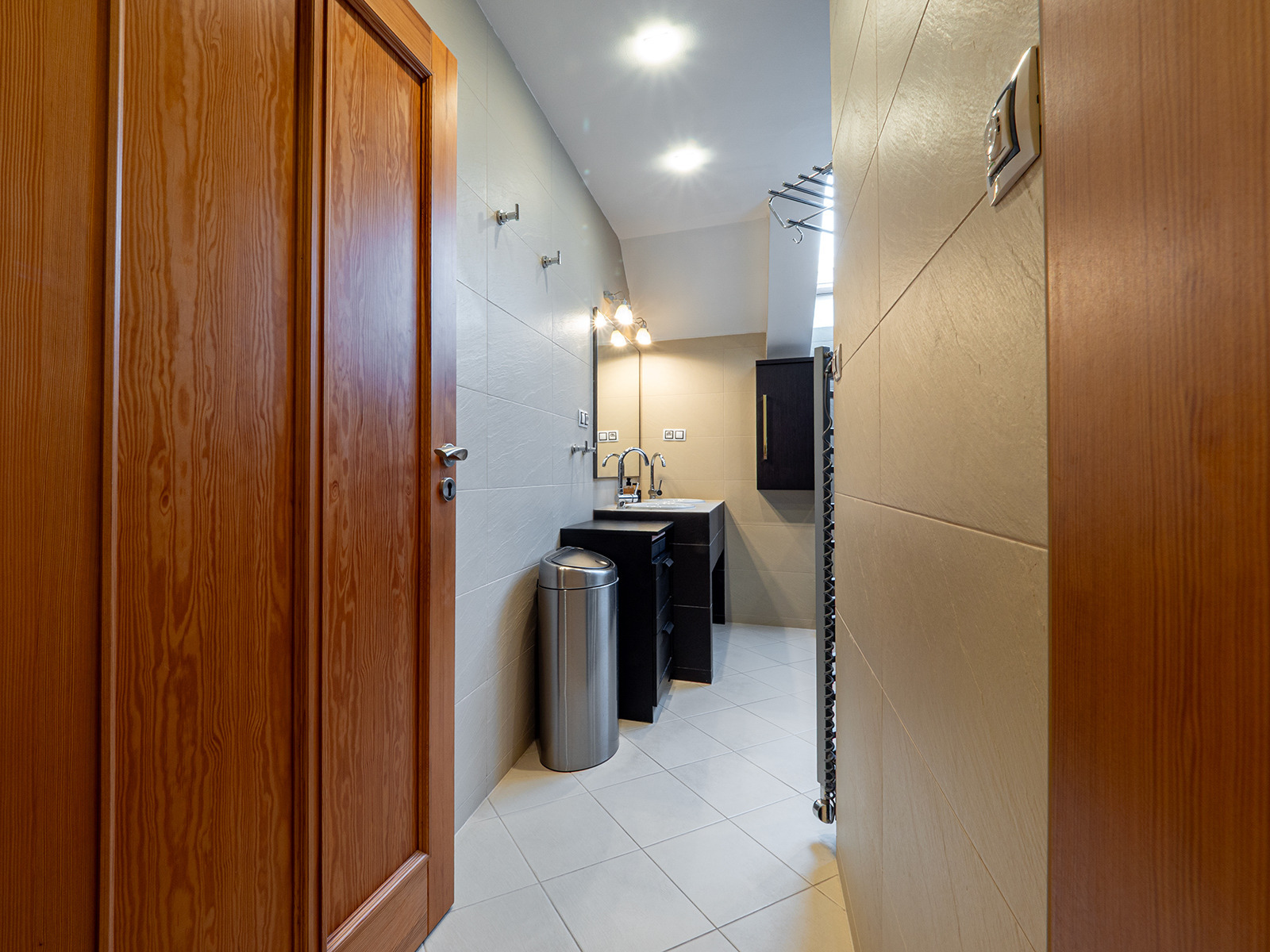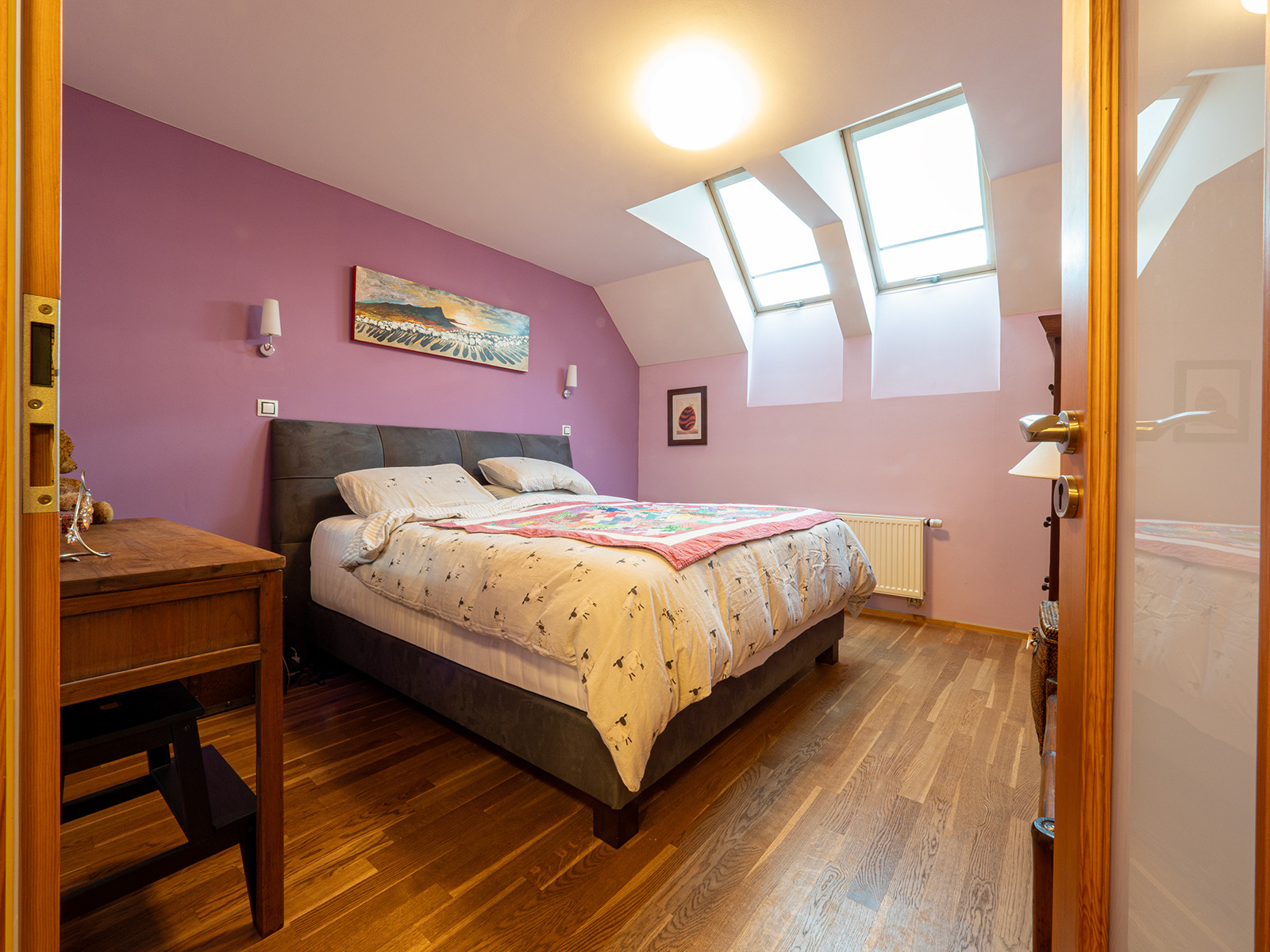 Mezonetový byt o rozloze 125 m² se nachází ve 3. a 4. p. domu bez výtahu. Z obývacího pokoje je přístup na terasu o rozloze 39 m², která je orientovaná do klidného vnitrobloku. Celková užitná plocha bytu je tedy 164 m². V místnostech je dřevěná podlaha, u kuchyňské linky je dlažba. V bytě je koupelna a dvě samostatná WC. Orientace obývacího pokoje s k.k. je S+J, ložnice jsou na S. V bytě je klimatizace, internetové připojení optickým kabelem a v předsíni velká vestavěná skříň. Topení zajištěno plynovým kotlem Protherm. K bytu náleží 2 komory a sklep. Kolaudace bytu byla v roce 2008.