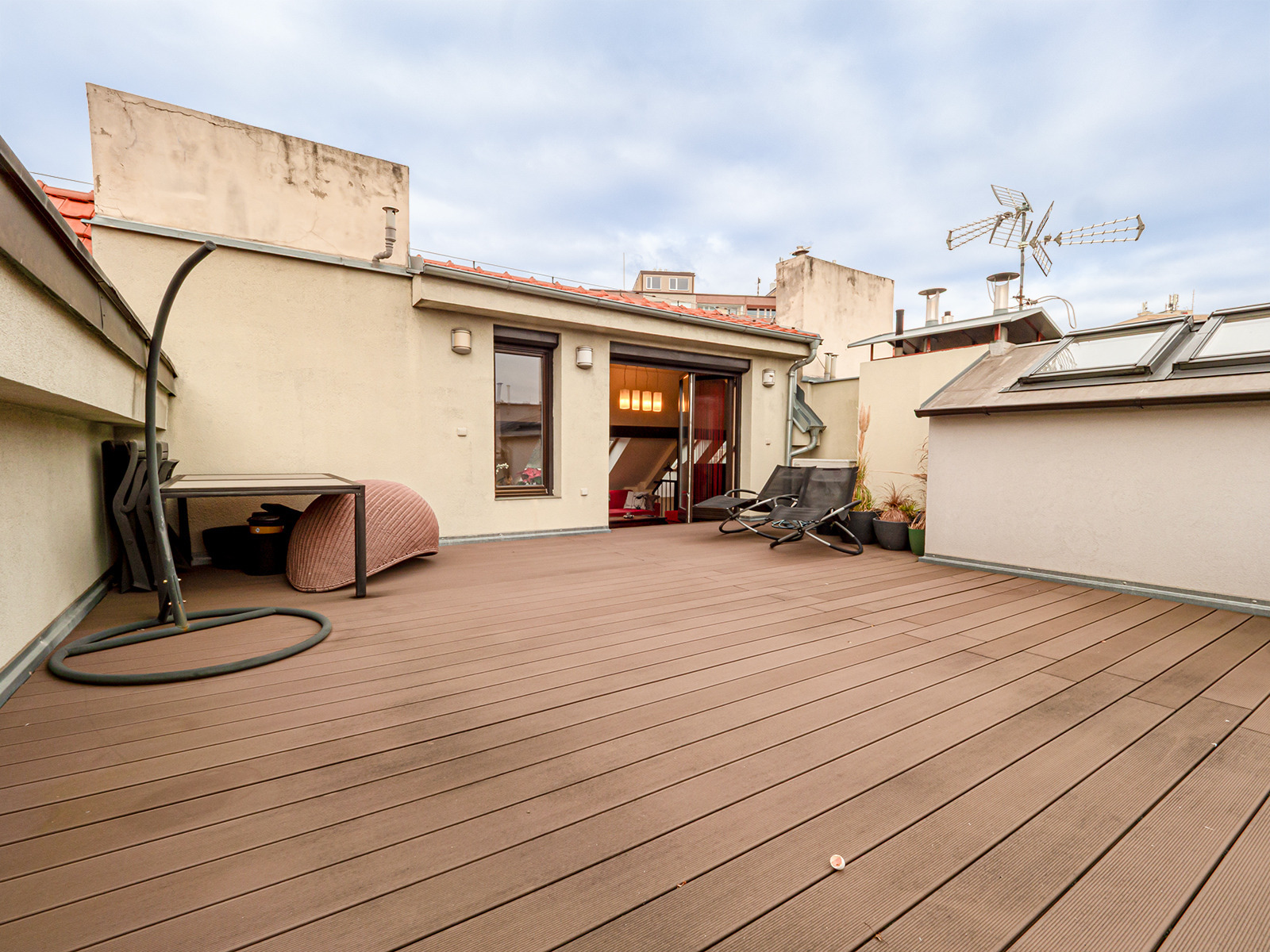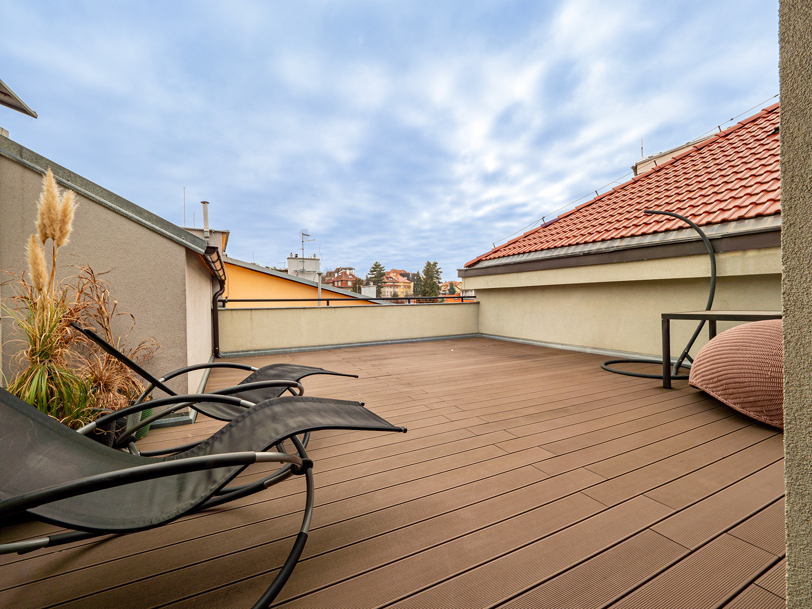 Prodej bytu 4 + k.k. 164 m² (terasa 39 m²), Praha 4 - Podolí, ul. Doudova