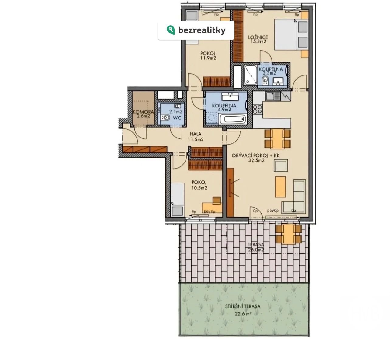 | Dispozice/podlahová plocha: | 4+kk/102 m² |
