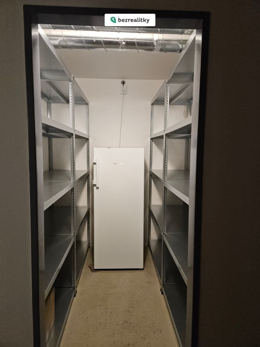 Ve sklepě/komoře se nachází nové regály na míru, které maximalizují úložný prostor a díky individuálně zavedené elektřině je možné využít prostor např. i k uchování mražených potravin.