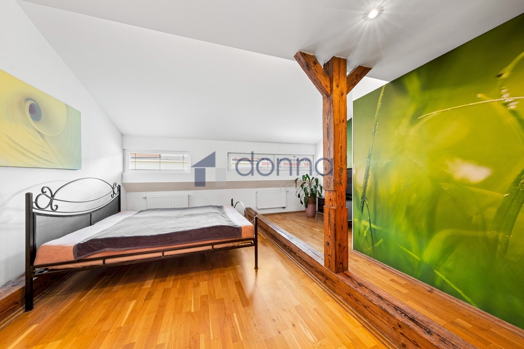 Dispozice bytu nabízí praktické rozdělení jednotlivých zón a příjemnou míru soukromí. Zajímavost mu dodává samotný podkrovní prostor s dřevěnými trámy, členitost a dobře vyřešené osvětlení. Celoroční pohodlí - topení a ohřev vody zajišťuje vlastní elektrokotel s radiátory.