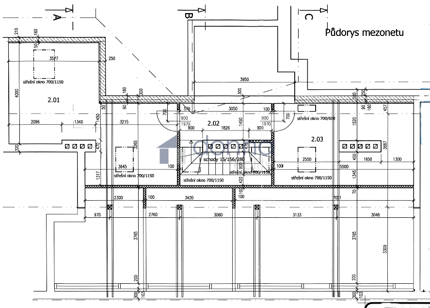 Horní patro nabízí 2 samostatné pokoje se střešními okny dodávající dostatek přirozeného osvětlení.