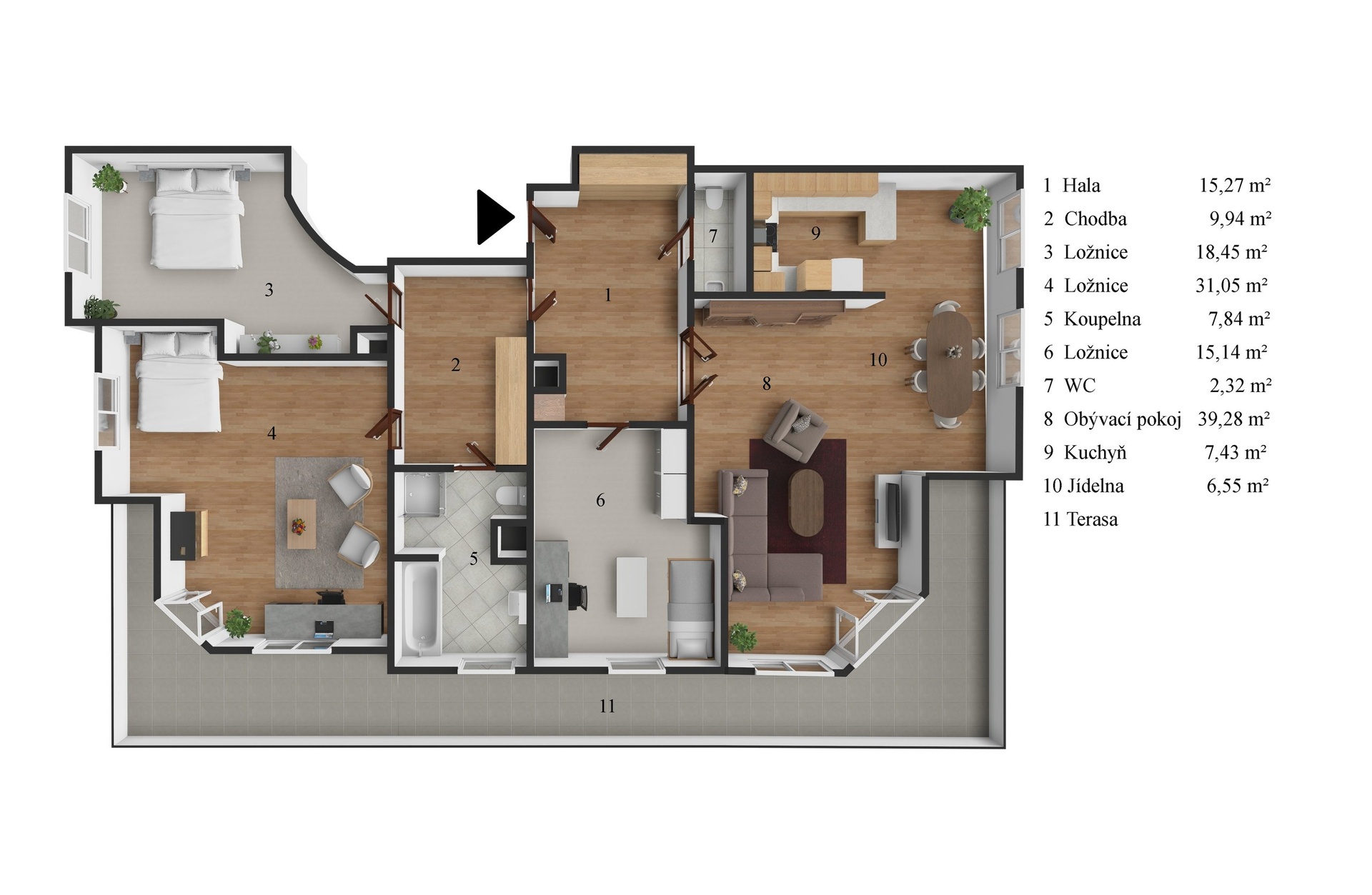 - unikátní terasa do „U“: obepíná celý byt, nabízí ničím nerušené výhledy i absolutní soukromí