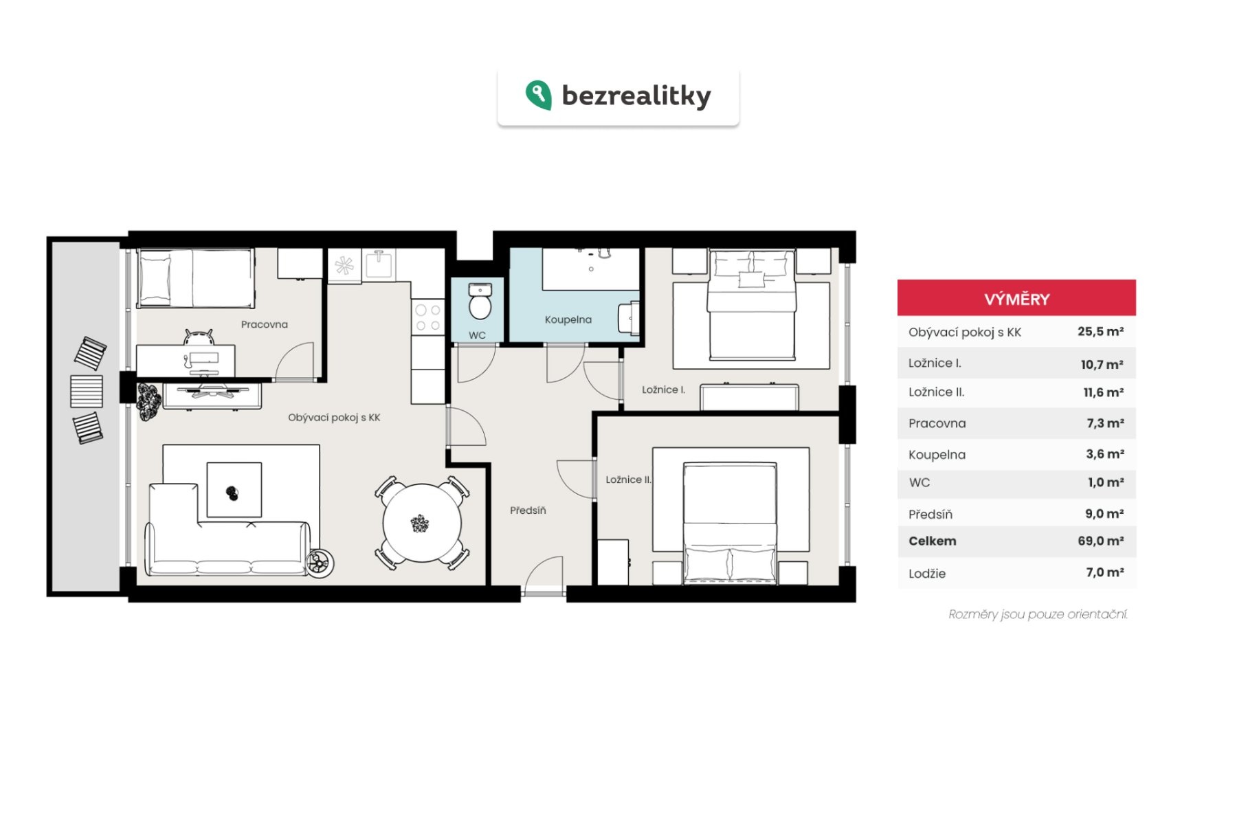 - Lodžie: 7 m²