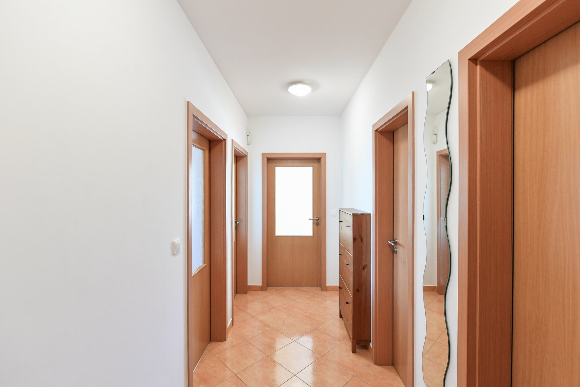 K bytu náleží nadstandardně velký zděný sklep (6 m²). Možnost dokoupení garážového stání v zabezpečeném parkovacím domě za 500 000 Kč.