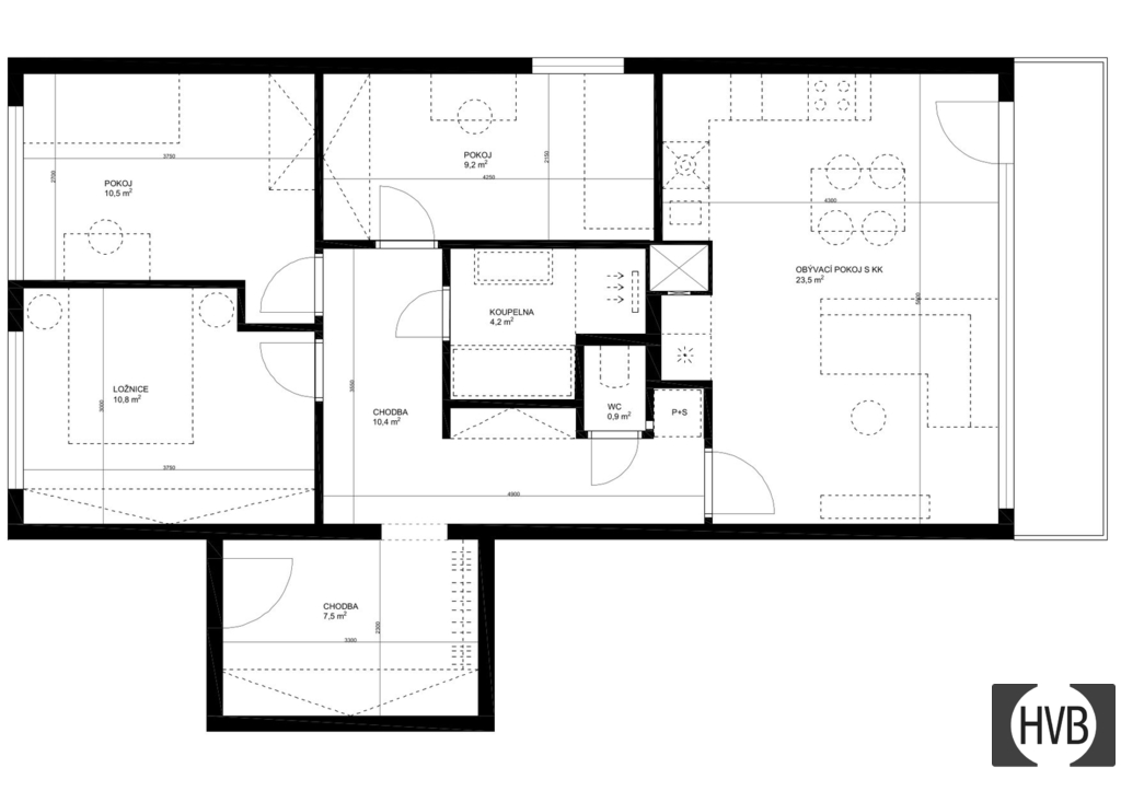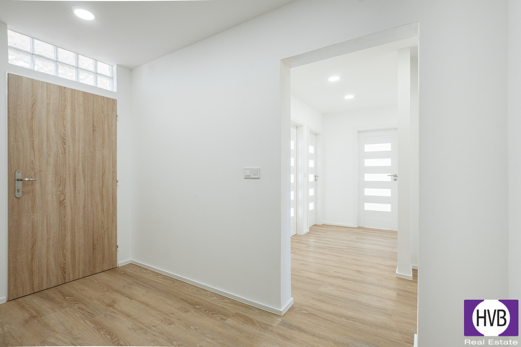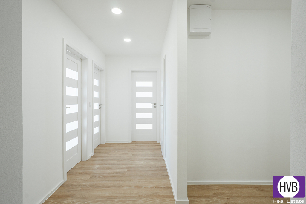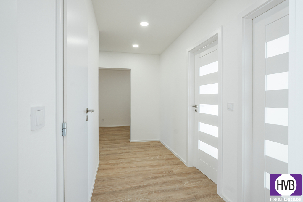 Dispozice: velmi prostorná vstupní chodba, obývací pokoj s plně vybavenou kuchyňskou linkou, tři obytné místnosti, koupelna a sprchový kout. Oddělené místo pro pračku a samostatné WC. Bydlení je navrženo s ohledem na moderní životní styl, vybaveno kvalitními materiály a promyšlenými detaily.