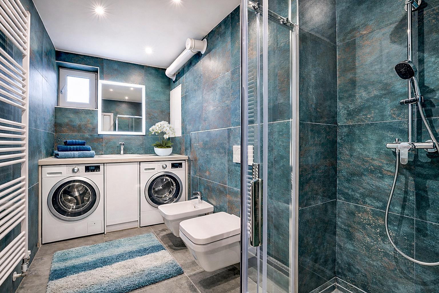 Vytápění a ohřev vody zajištěno přes kondenzační kotel Bosch.