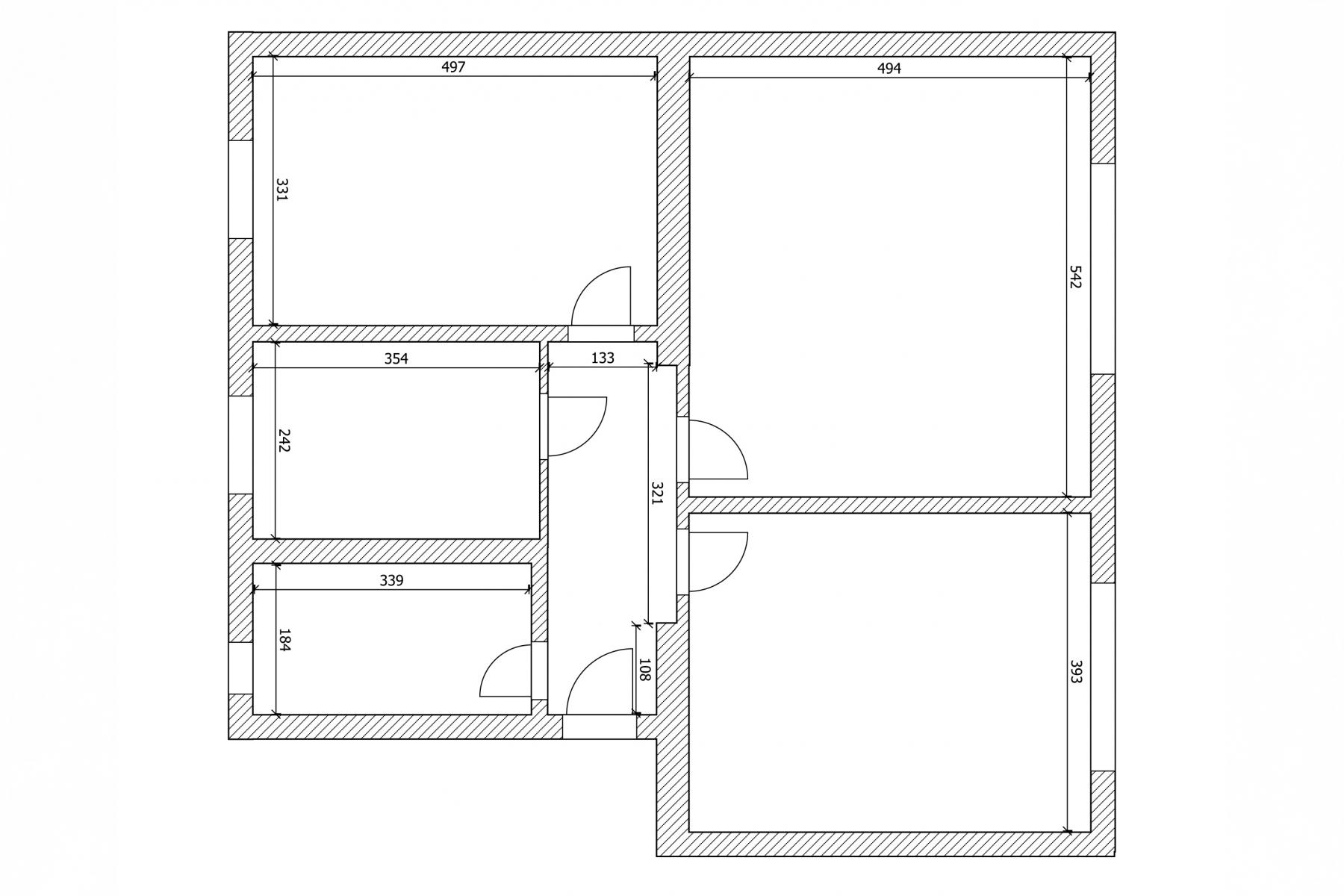 Dispozičně je byt řešen velmi prakticky, centrální chodba propojuje obývací pokoj s kuchyňským koutem, dvě prostorné ložnice, pracovnu a koupelnu. Žádná z místností není průchozí.