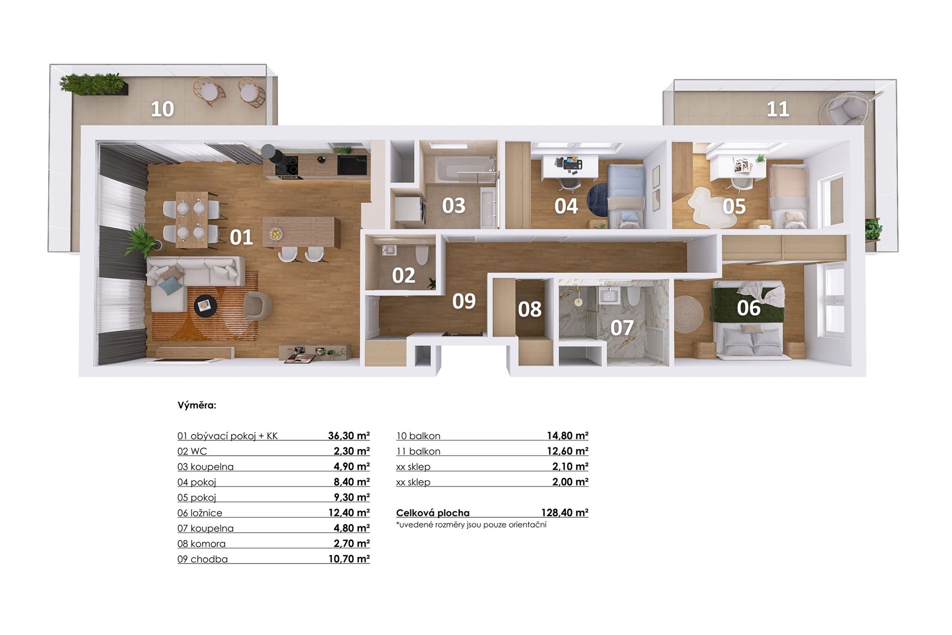 - Celková podlahová plocha: 128 m²