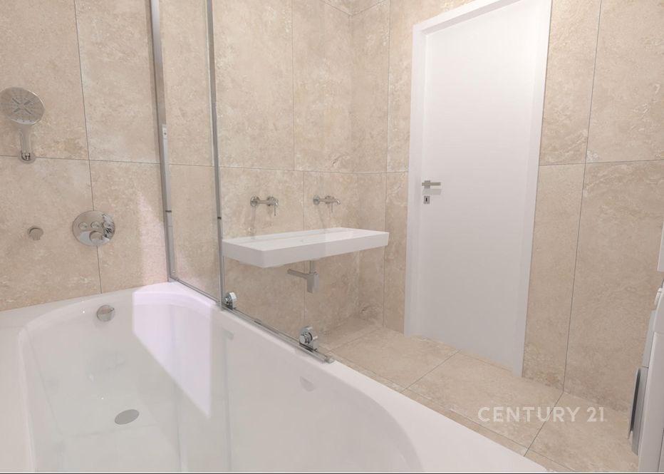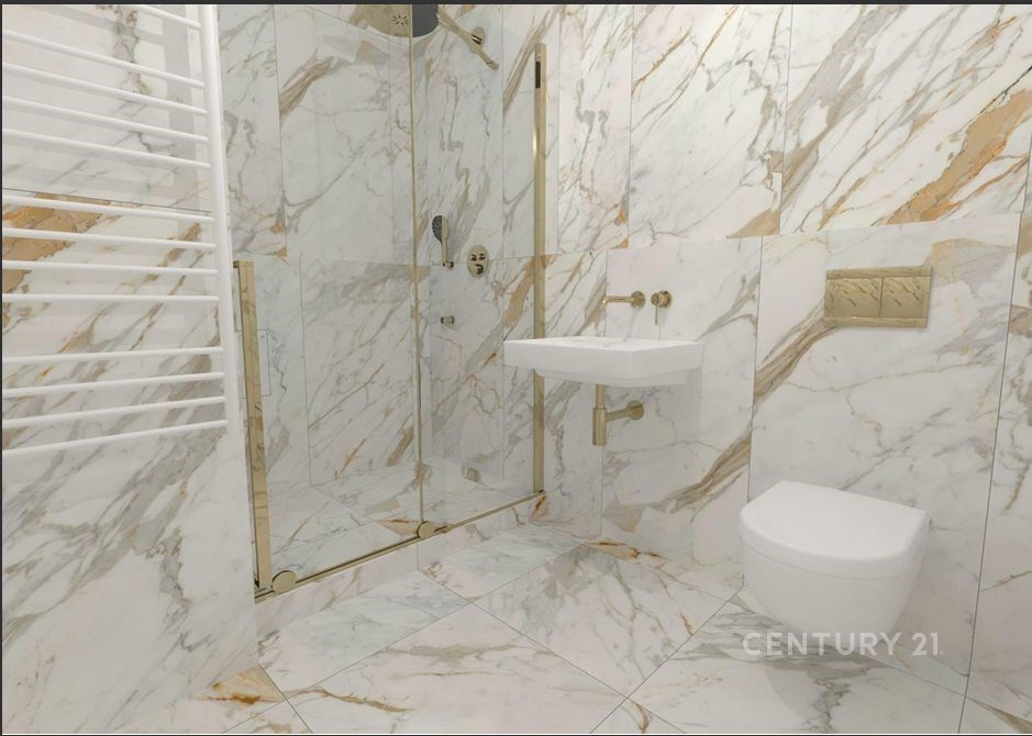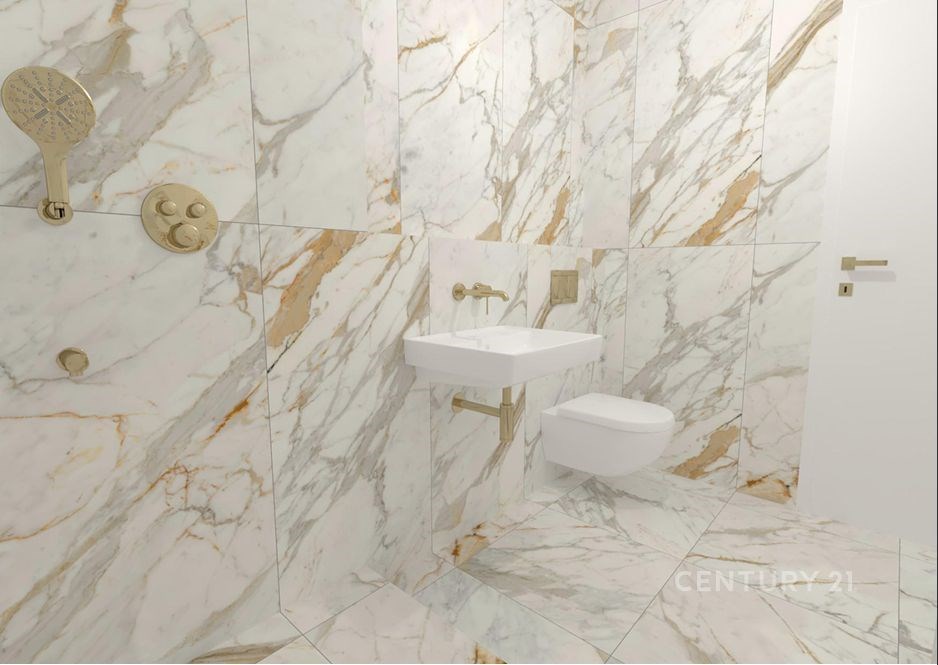Jednotka má vysoce nadstandardní vybavení v hodnotě 1 510 756 Kč, které je zahrnuté v ceně. Luxusní koupelny a WC jsou vybaveny prvotřídními materiály: dlažba a obklady Ragno (travertin a mramor), sanita Villeroy & Boch, baterie Grohe a elektrické podlahové topení s digitálním termostatem. Interiérové bezfalcové dveře SAPELI Elegant Premium bílé barvy se skrytými panty TECTUS a klikami M&T Lusy doplňují reprezentativní vzhled bytu, stejně jako bezpečnostní vstupní dveře GOLIAS RC3. Budoucí kupující získá dotaci 500 Kč/m², díky které si může sám zvolit finální podlahovou krytinu (vinyl, lamino nebo dřevo). V koupelnách, WC a komoře je použita italská velkoformátová dlažba Ragno – travertinový dekor TRAVERTINO Cross Beige a mramorový dekor Incanto Calacatta Michelangelo. Vizualizaci koupelen najdete ve fotkách.