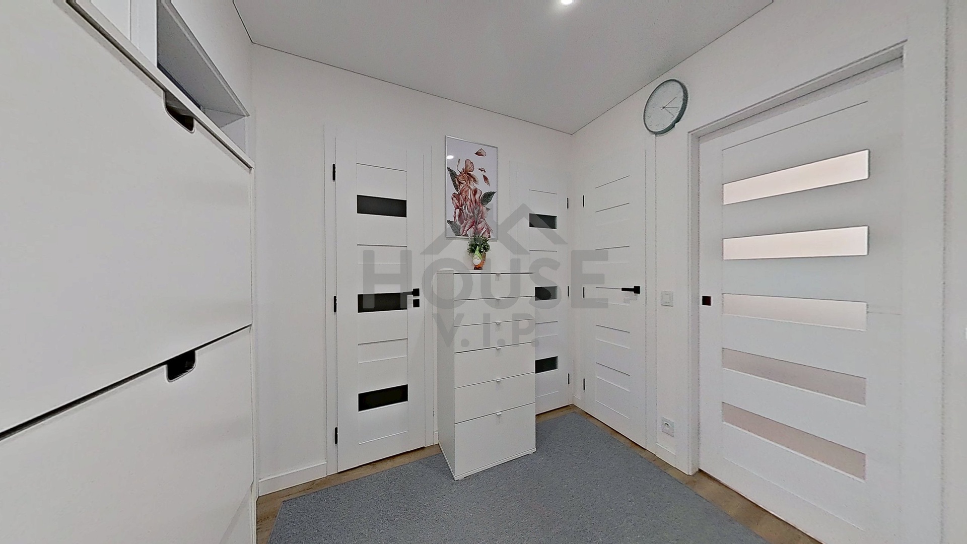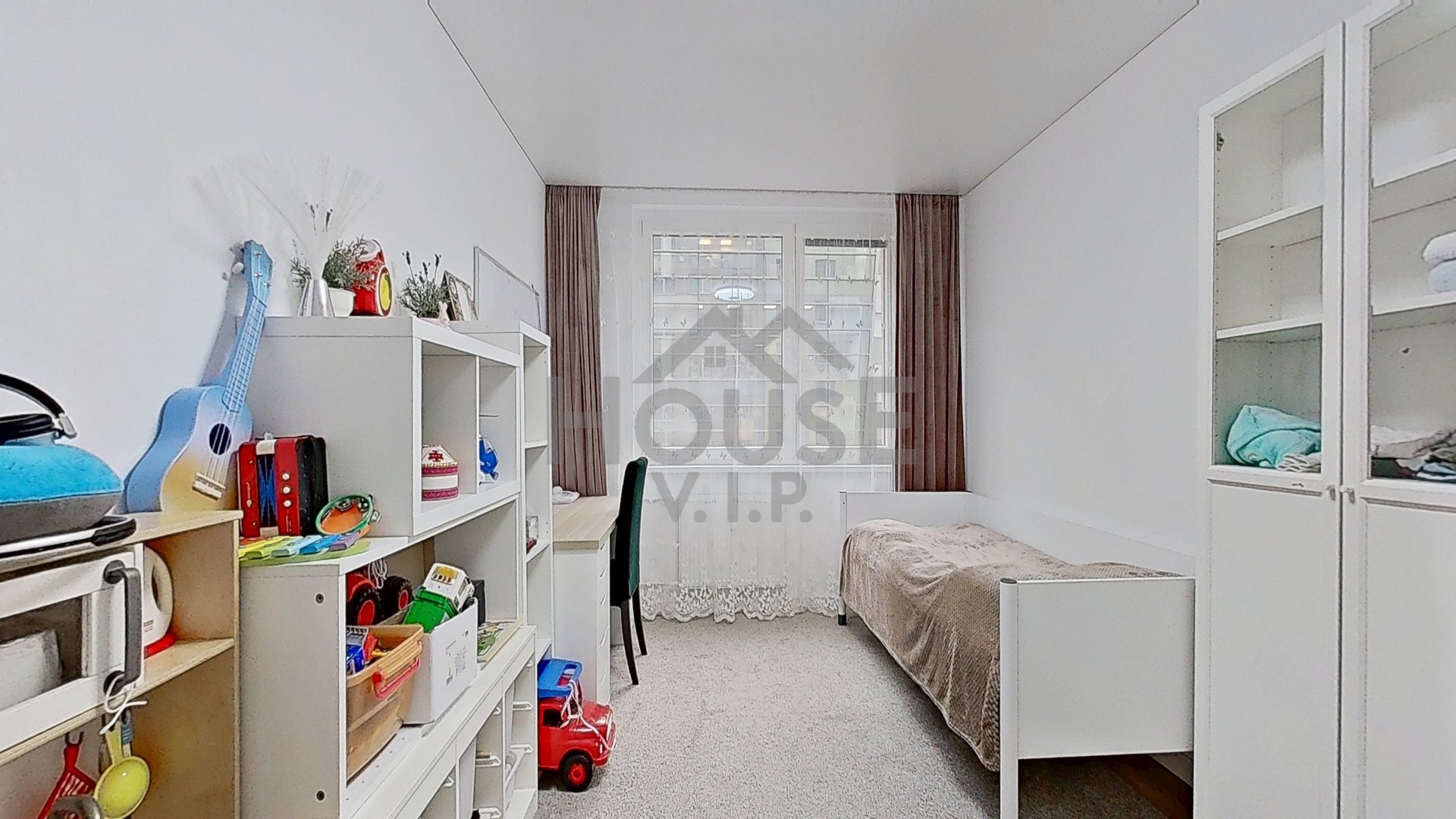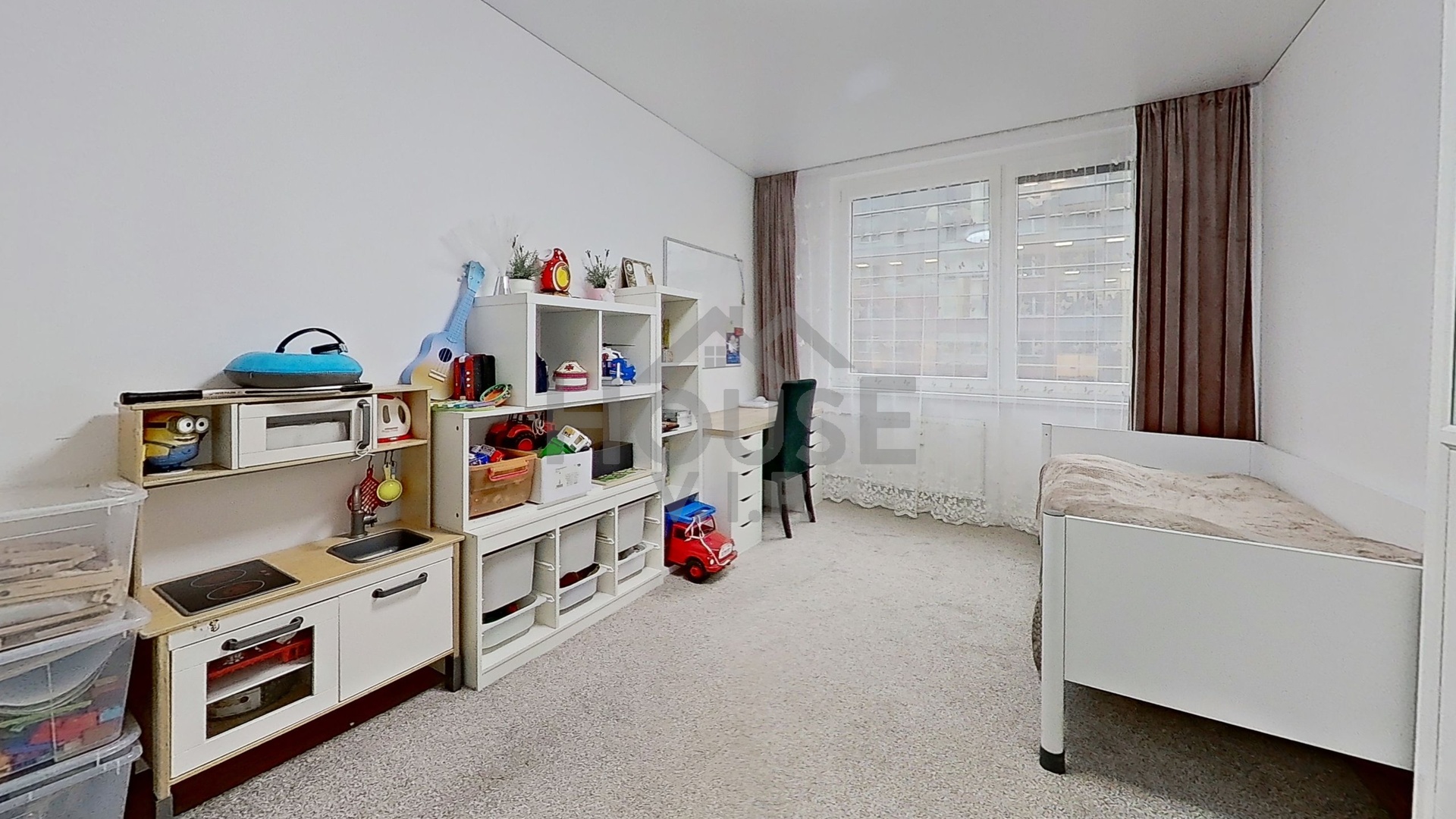 Dominantou bytu je velký obývací pokoj se vstupem na lodžii a prostorným kuchyňským koutem s plně vybavenou moderní kuchyňskou linkou ve tvaru „U“. Dále je zde ložnice s lodžií a vlastní koupelnou se sprchovým koutem a WC, další dva pokoje, koupelna s vanou, samostatné WC, prostorná chodba, nadstandardní komora a technická místnost s přípojkou na pračku. K bytu náleží sklep v přízemí domu a k dispozici je také společná místnost pro kočárky a jízdní kola. Energetický štítek G uvádíme proto, že zatím ještě nebyl dodán.