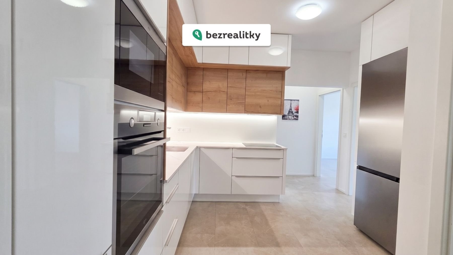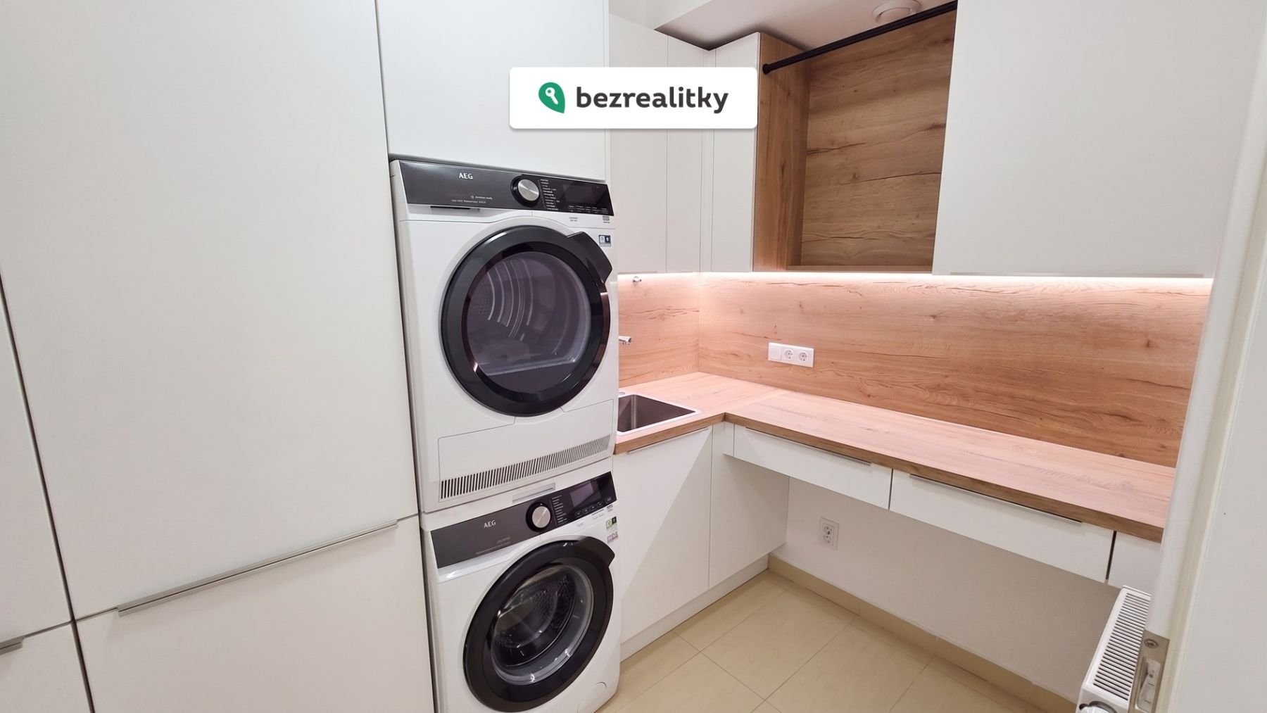 Byt je dvougenerační, v levé části je velikostně 2+kk a v pravé 3+kk, spojen je společnou předsíňkou. V každé části je jedna koupelna a celkem tři toalety. Dominantou bytu je moderní, luxusní kuchyně vybavená spotřebiči AEG v nejvyšší třídě a dvěma lednicemi značky Samsung. Ve dvou ložnicích i na chodbách jsou skříně a úložné prostory vyrobené na míru. Technická místnost je vybavena dřezem, pracovní deskou, vestavěným nábytkem, pračkou i sušičkou. Součástí prodeje je i parkovací stání v domě na uzamykatelném zakladači.