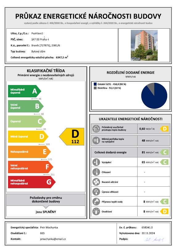 - Energetický ukazatel podle vyhlášky: č. 264/2020 Sb.