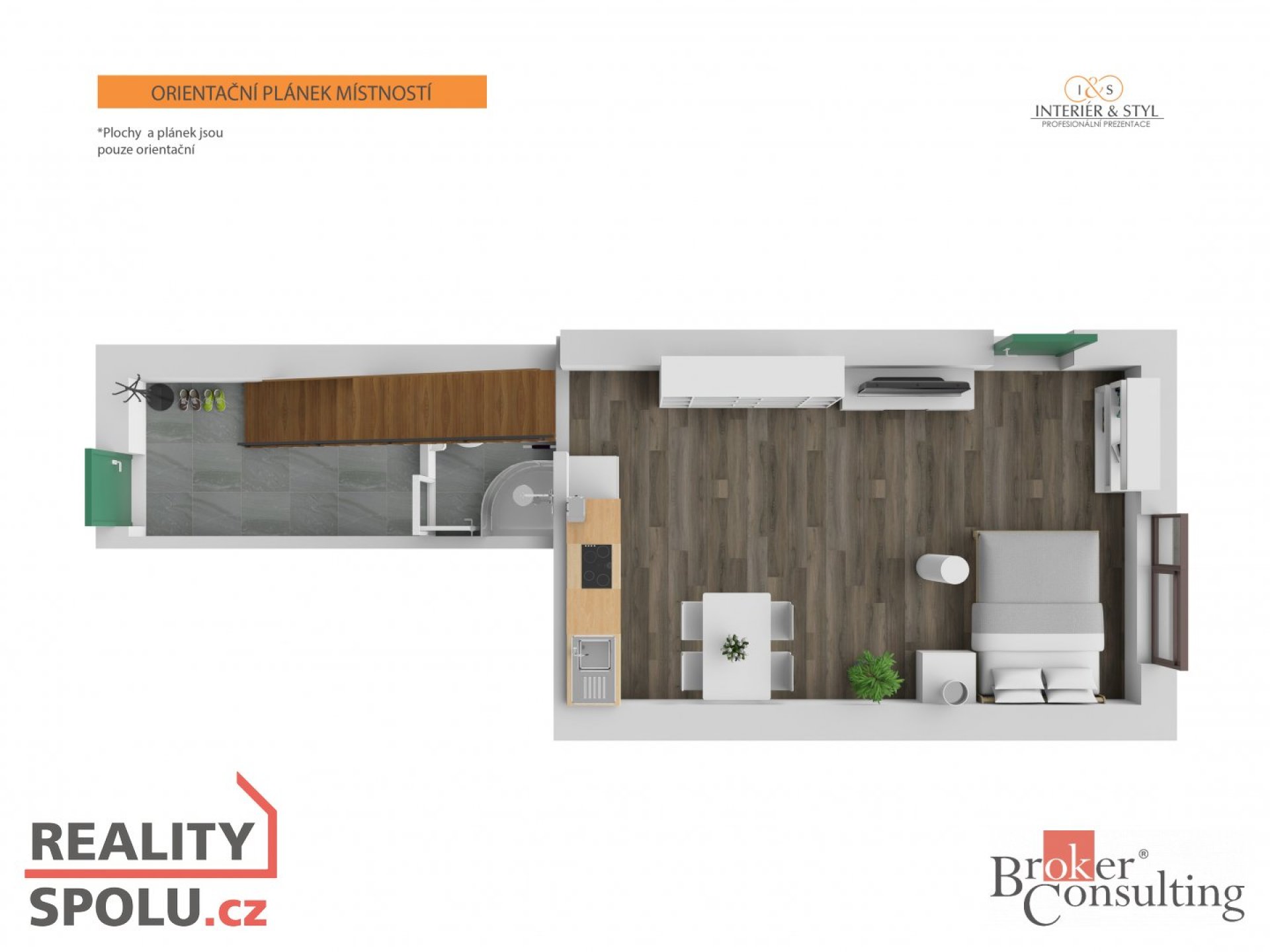 - Dispozice bytu: 1+kk