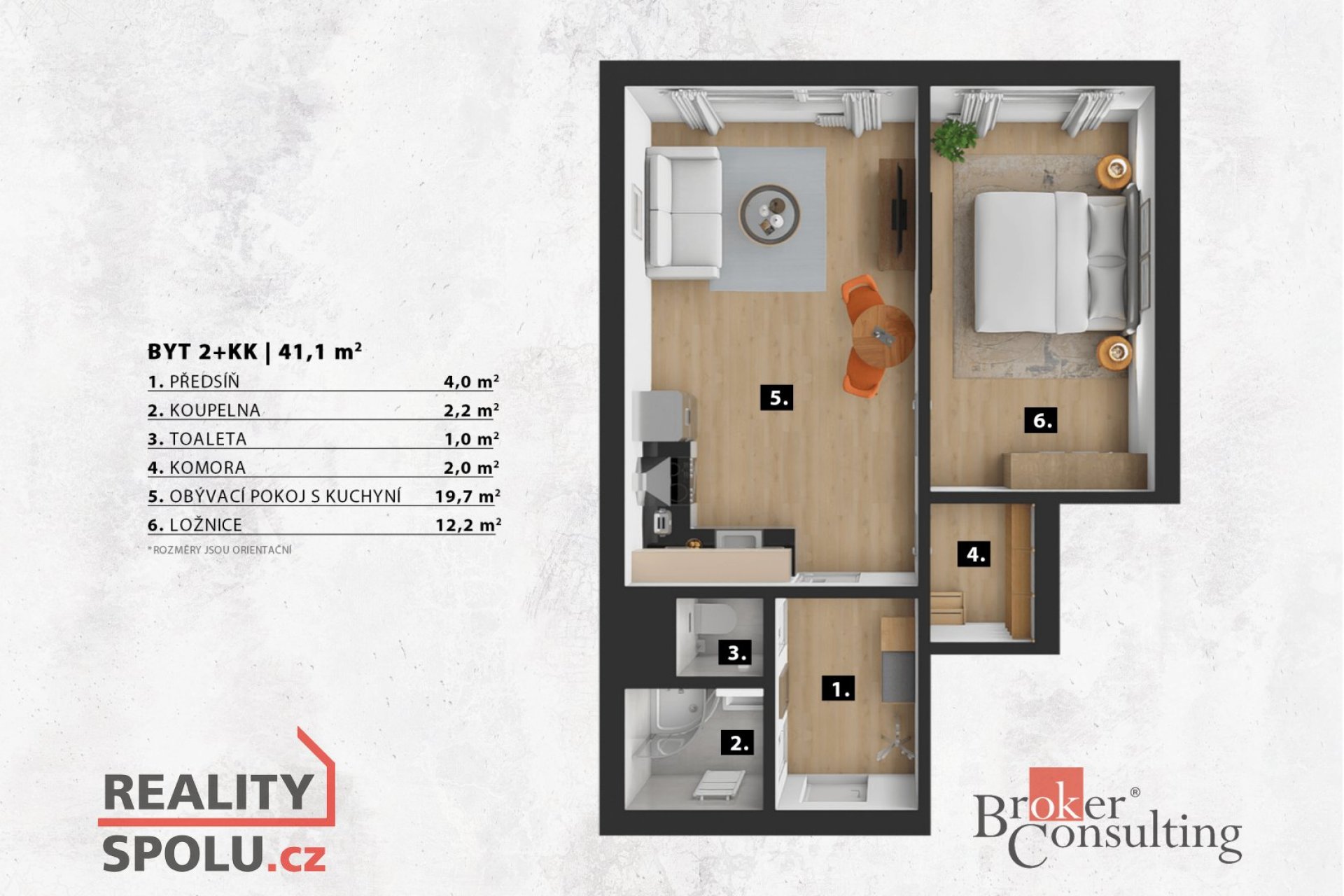 - Celková podlahová plocha: 41 m²