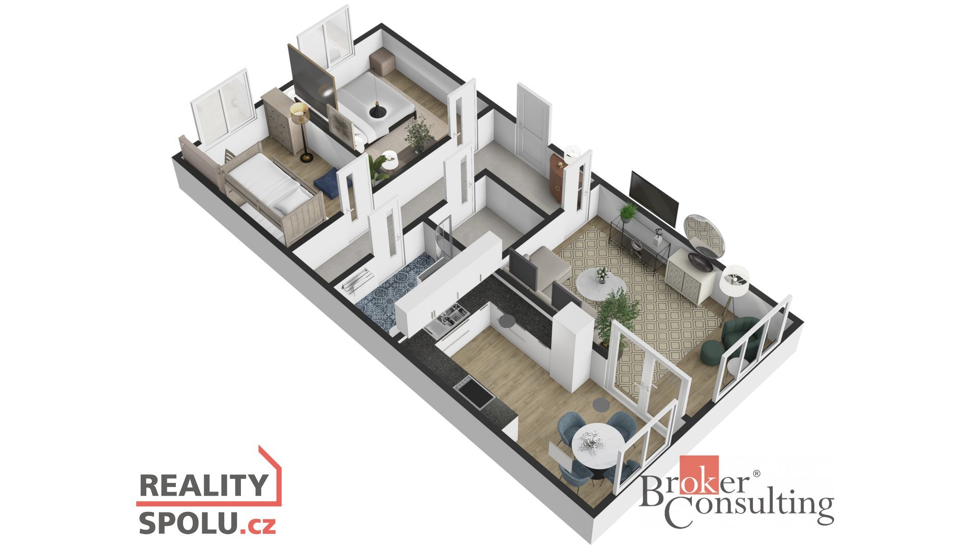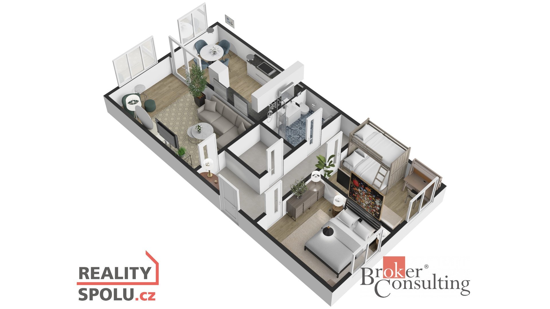 Upozornění: Fotografie obsahují i vizualizace možné rekonstrukce – byt je aktuálně v původním stavu.