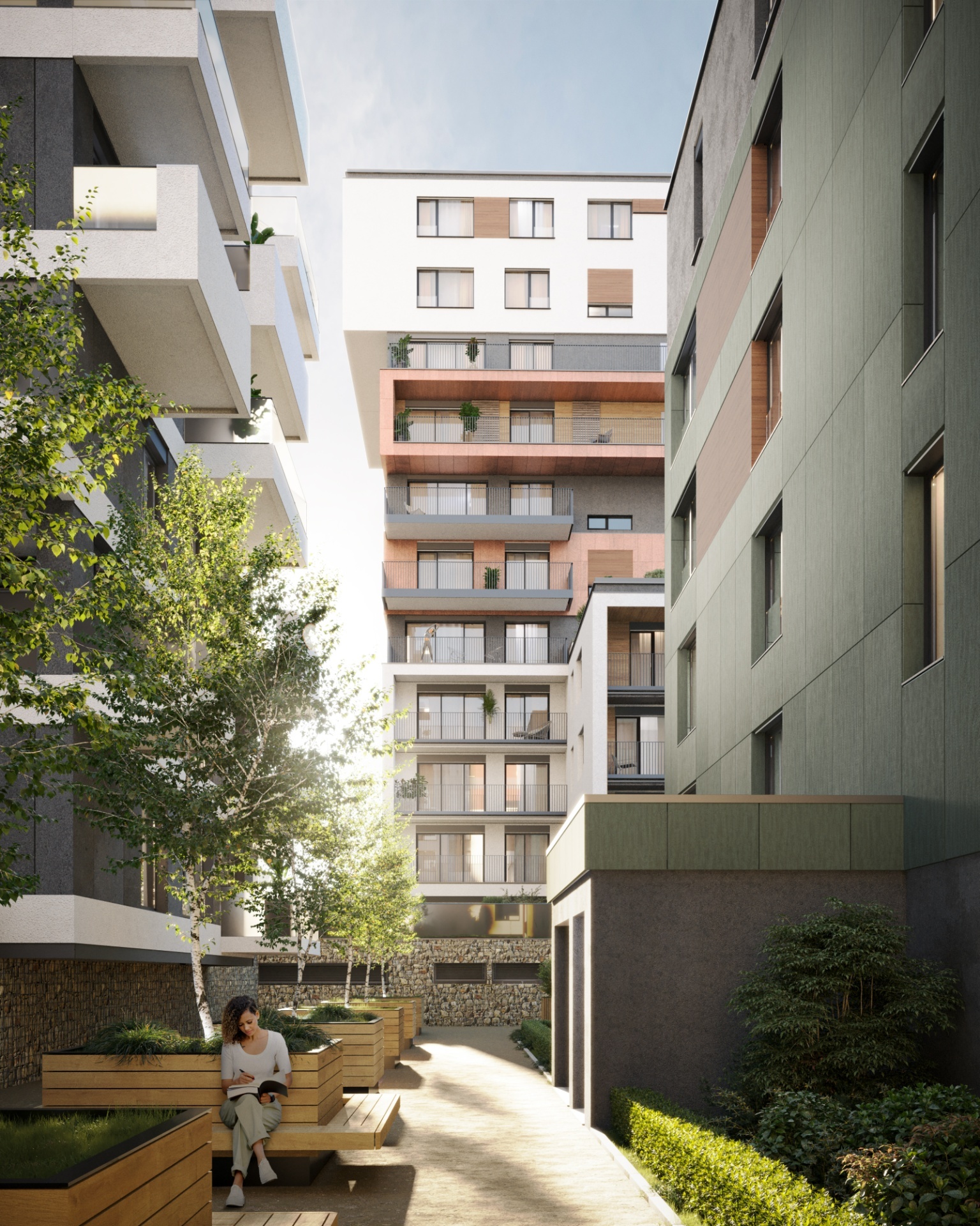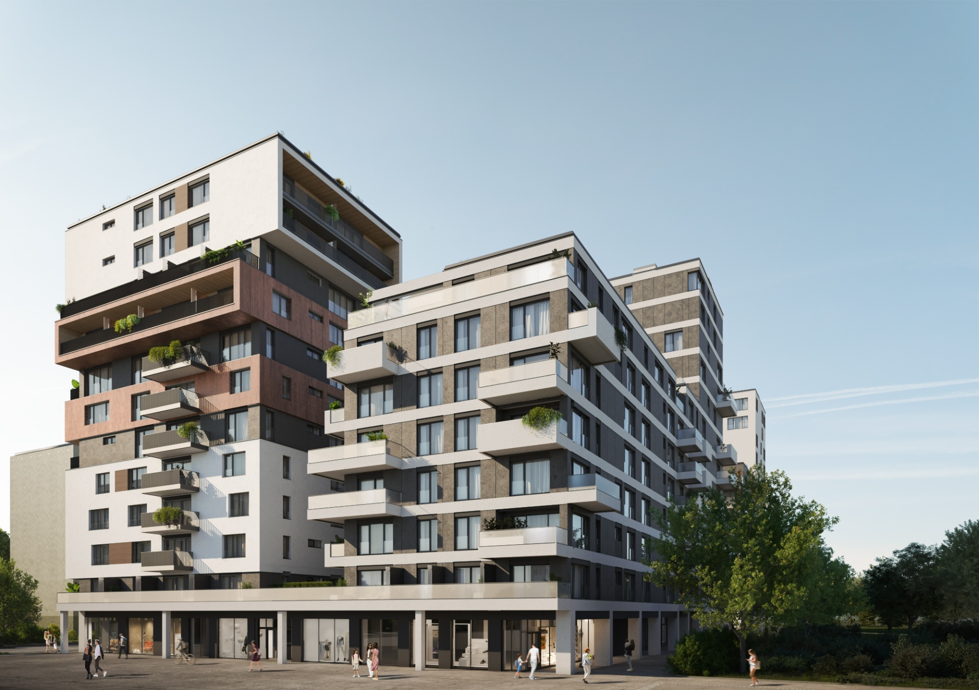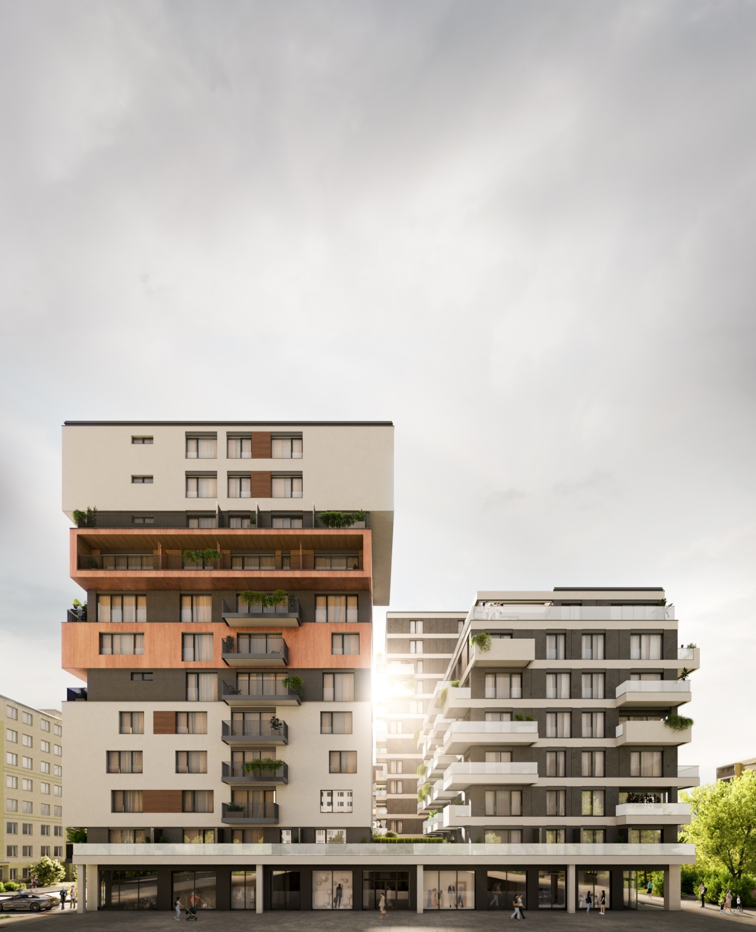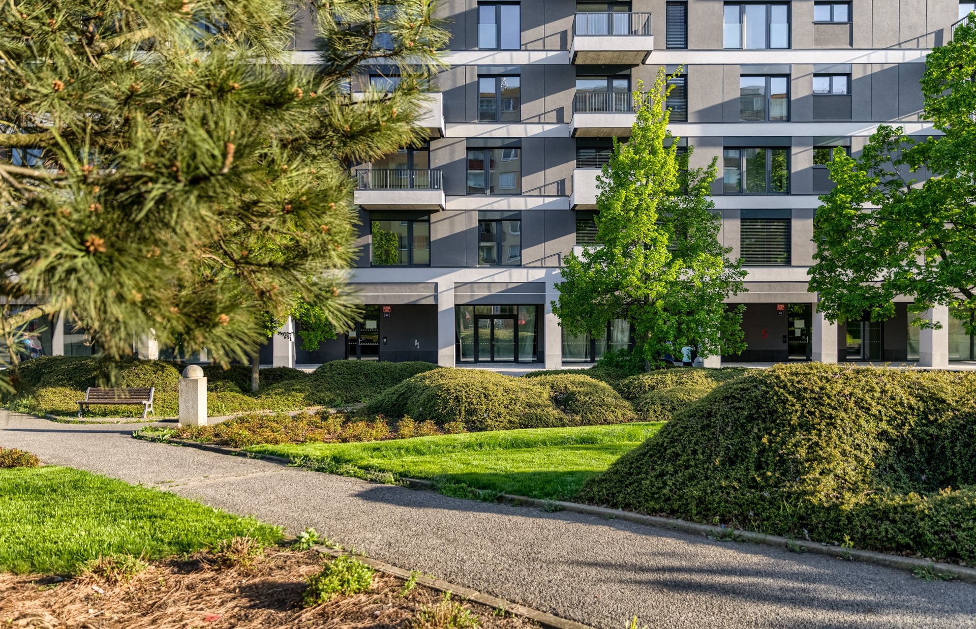 Byt je umístěn v pátém nadzemním podlaží bytového domu a obytné místnosti nabízí výhled do klidného vnitrobloku a do ulice. Srdcem bytu je velkorysý obývací pokoj s liniovým kuchyňským koutem, ze kterého vede vstup na pohodlný balkon. Byt nabízí velké množství úložných prostor, a to jak v prostorné členěné vstupní hale se šatnou, tak v obytných místnostech.