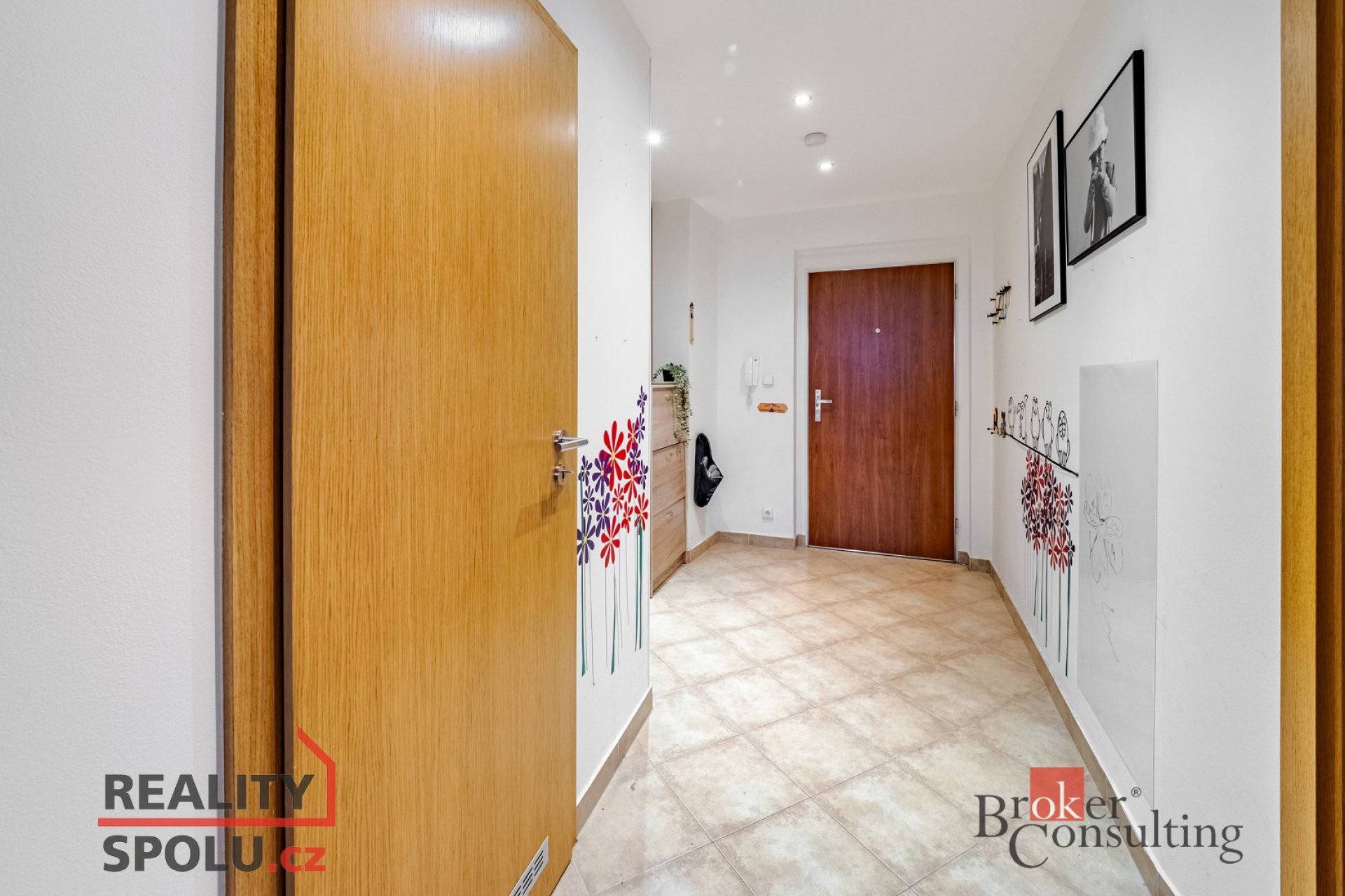 V obytných místnostech je laminátová plovoucí podlaha, v kuchyni, koupelně, na toaletě a v chodbě dlažba. Koupelna je vybavena rohovou vanou a dvěma umyvadly, toaleta je samostatná s umyvadlem. Byt disponuje komorou/šatnou a vstupní halou s vestavěnou skříní, které poskytují dostatek úložného prostoru. Vytápění je ústřední, radiátorové, okna jsou vybavena vnitřními roletami. Měsíční náklady na provoz bytu činí cca 6 000 Kč včetně energií.