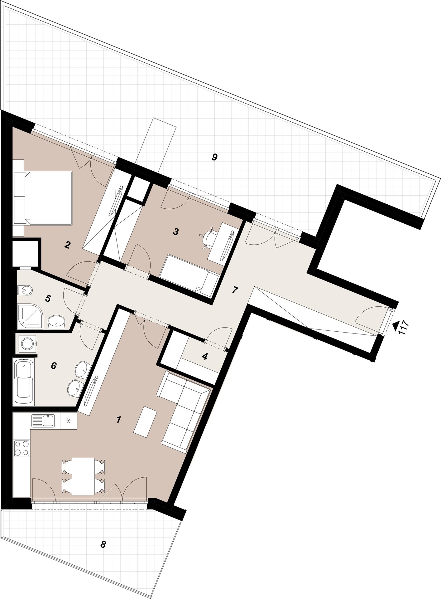- Dispozice bytu: 3+kk