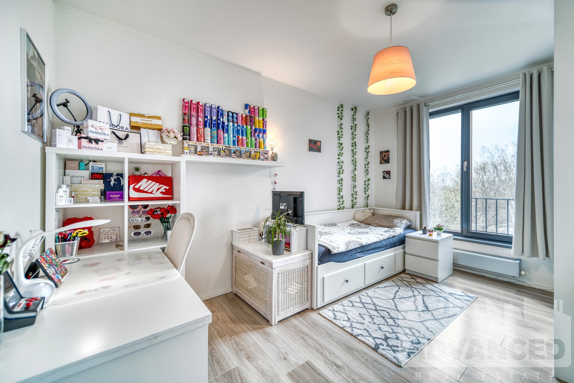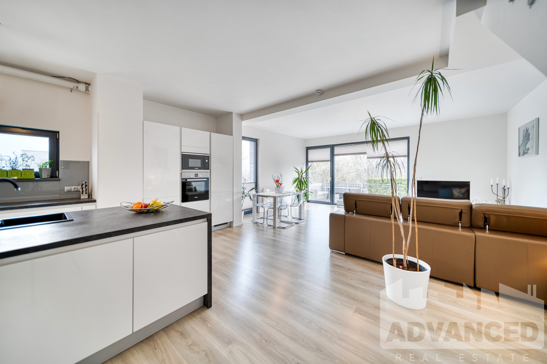 Prostor bytu je velmi vzdušný, světlý, s velkými okny, které jsou orientovány tak, aby zajišťovaly soukromí a mají výhled do zeleně. Byt byl dokončen v r. 2017, ale je jako nový, ve výborném stavu.