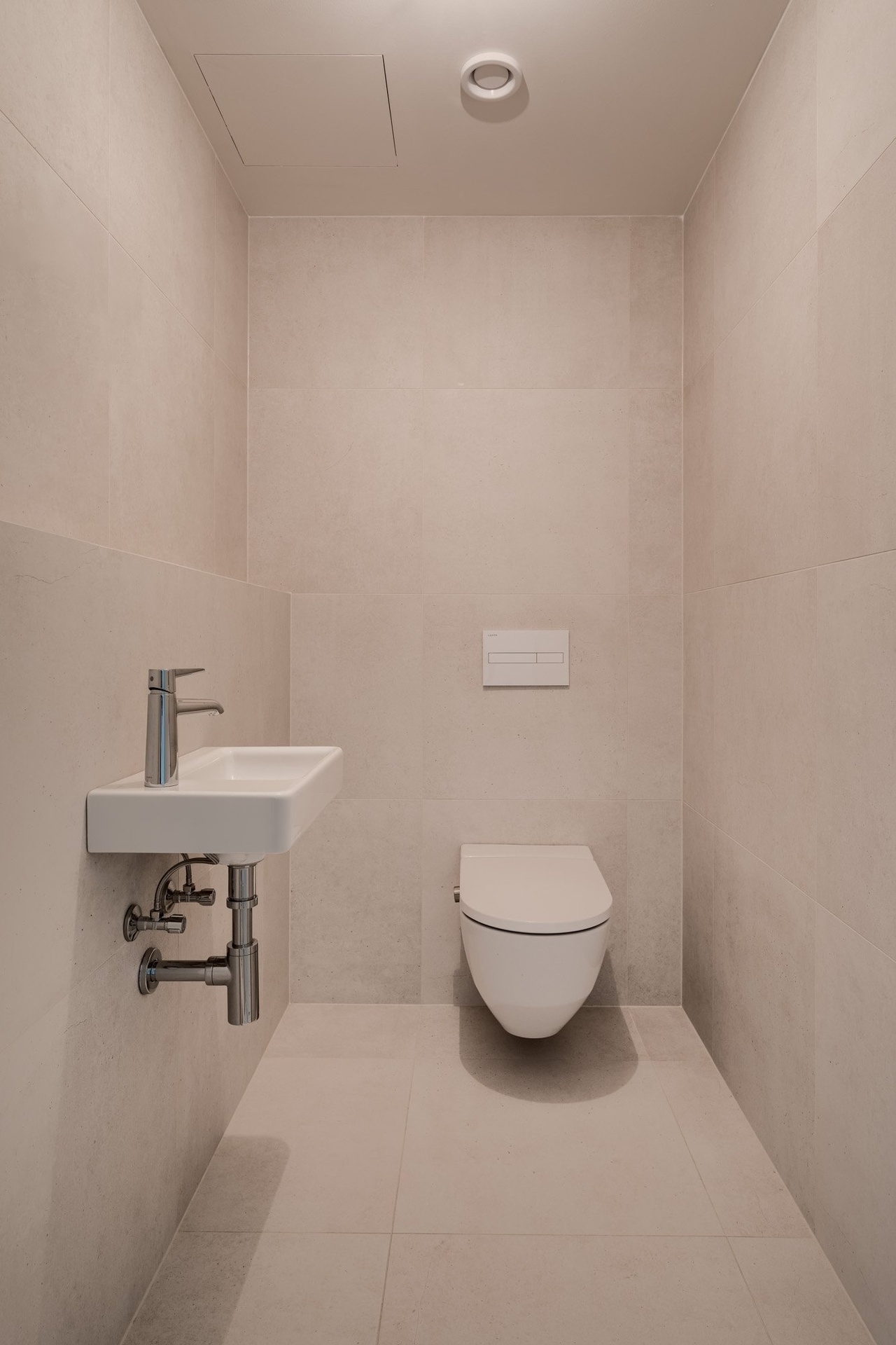Ze dvou dětských pokojů vede přímý vstup na druhou terasu. Koupelna je vybavena vanou, toaletou a dvěma umyvadly, v bytě jsou pak dispozici ještě i dvě samostatné toalety s umyvadlem. Celý byt je typický vzdušností a dostatkem prostoru a soukromí, stejně jako úložných prostor v zádveří, prostorné chodbě či komoře.