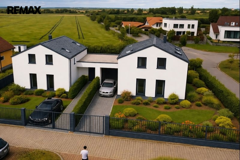 Cena zahrnuje kompletně dokončený dům včetně zatravněné zahrady, oplocení a vjezdové brány. Termín dokončení do tří měsíců.