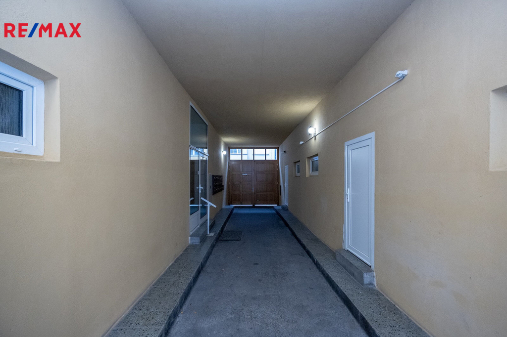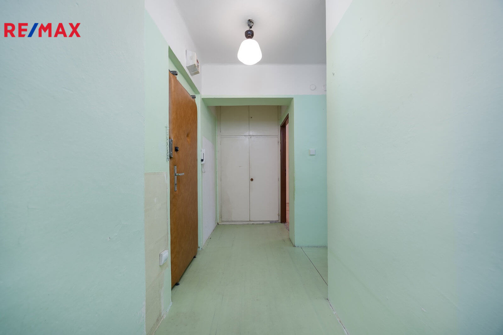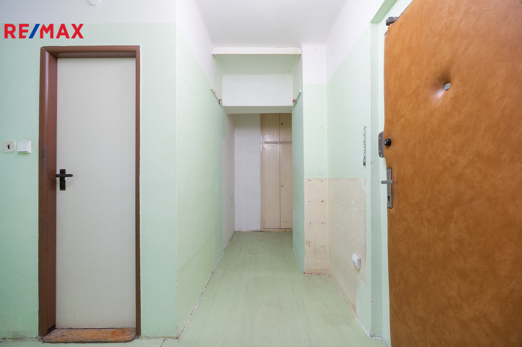 Byt je určený ke kompletní rekonstrukci a nabízí velmi dobrý potenciál pro změnu dispozice na 2+kk. Současné rozvržení tvoří pokoj o velikosti 19,48 m², kuchyň 8,24 m², předsíň 9,14 m², koupelna 2,3 m² a samostatné WC 0,94 m². Okna jsou orientována na západ do klidné ulice Schnirchova, třetí nadzemní podlaží zajišťuje odstup od dění na ulici a dostatek světla.