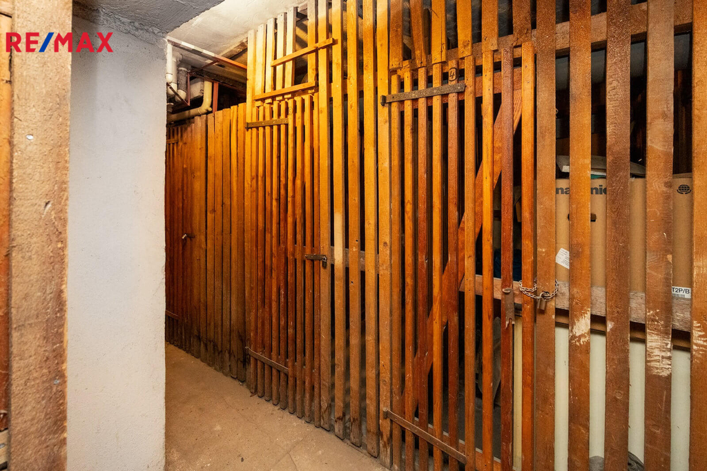 K bytu náleží sklepní kóje cca 2 m² v suterénu domu. V mezipatře u výtahu se nachází balkon, který také patří k bytu. Dům má výtah, který jezdí do mezipatra, a k bytu je to přibližně půl patra. V domě je také funkční kolárna. Anuita bytu je zcela splacena.