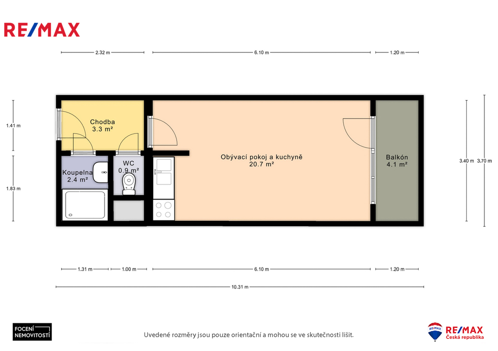 | Dispozice/podlahová plocha: | 1+kk/31 m² |