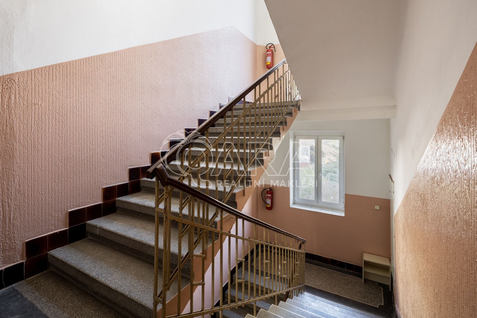 Byt o celkové výměře 85,24 m (vnitřní výměra 78,73 m, balkon 6,51 m) je vyřešen velmi prakticky a tvoří jej: hala, 2x pokoj, kuchyň se spíží, obývací pokoj, koupelna s vanou, samostatné WC a komora. Orientace obývacího pokoje a kuchyně je na jih s výhledem do parku Fr. Suchého, ostatní dva pokoje jsou orientovány na sever. Z většího z pokojů je přístup na balkon. Měsíční poplatky za byt jsou 993,- Kč + elektřina a plyn. Vytápění a ohřev vody zajišťuje vlastní plynový kotel, v obývacím pokoji je funkční krb. K bytu náleží malý půdní prostor přístupný z haly.