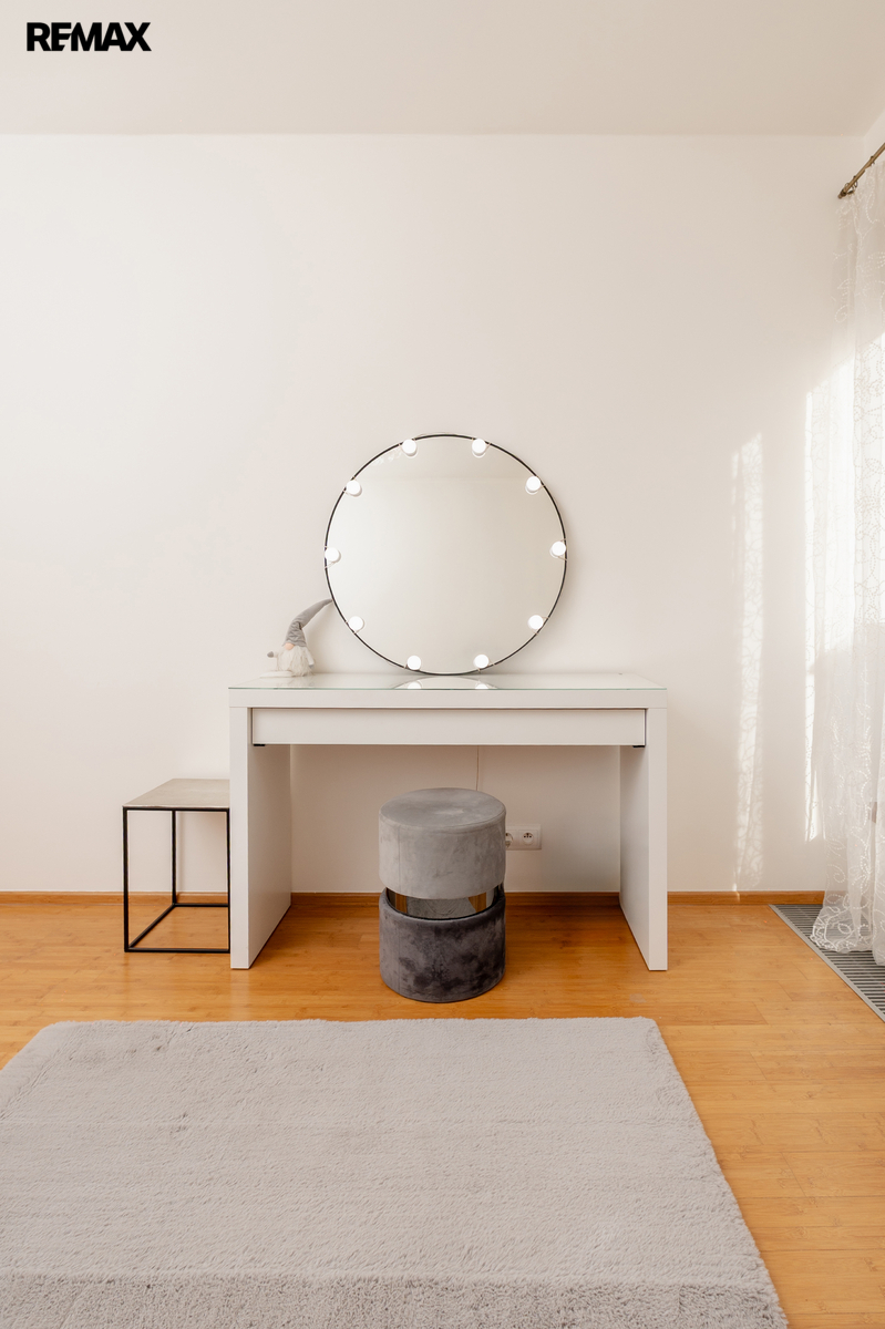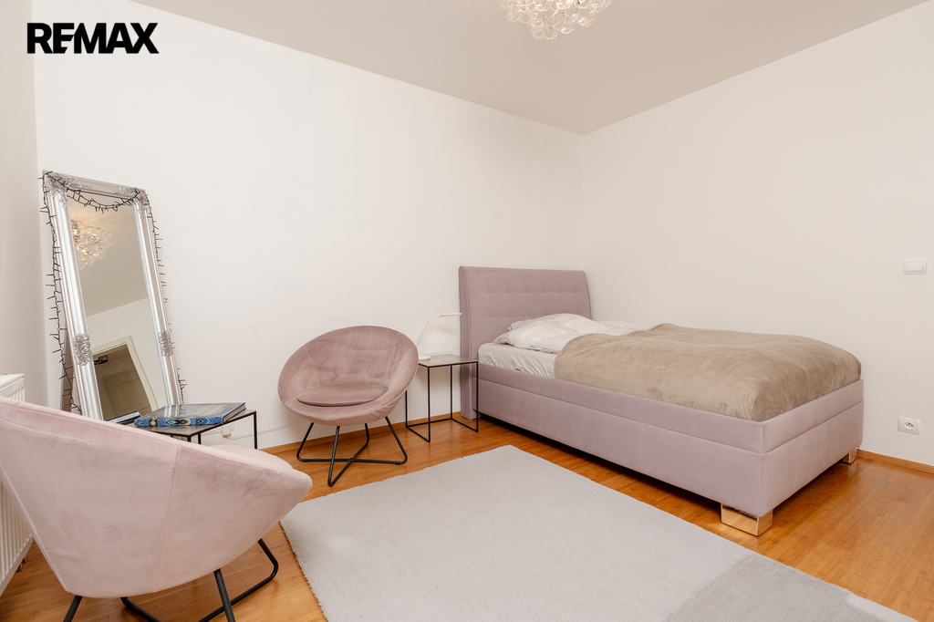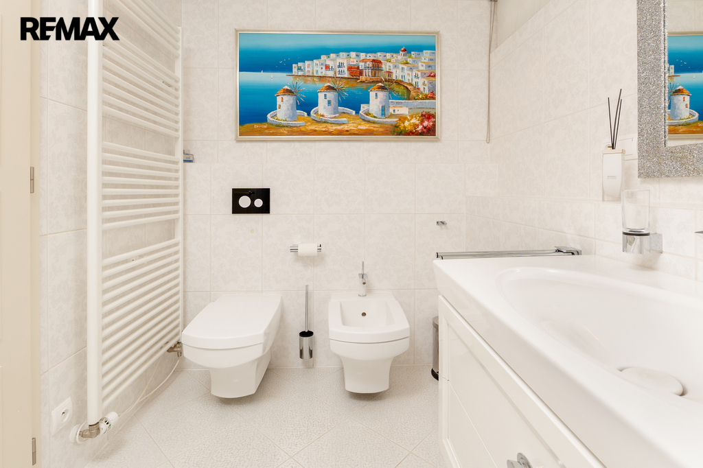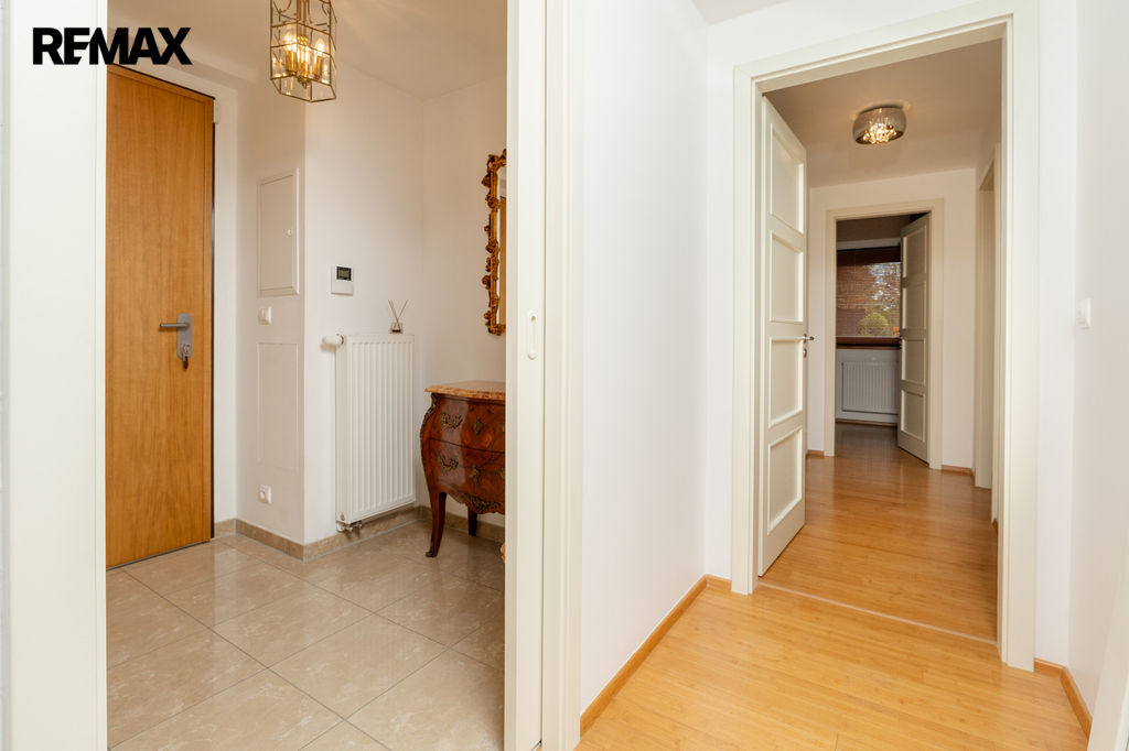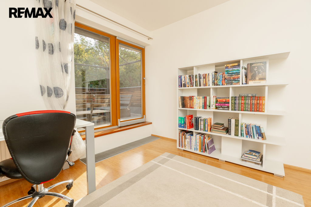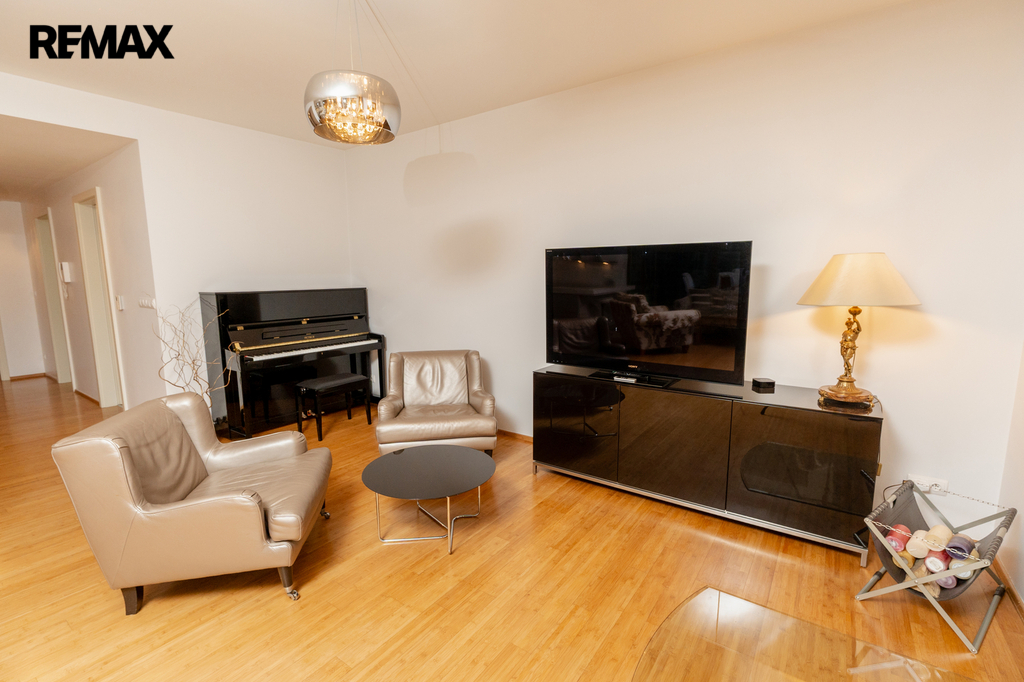 Součástí obytné části je designová kuchyň značky Poggenpohl, vybavená veškerými vestavěnými spotřebiči. Velká francouzská okna zajišťují dostatek denního světla a dodávají interiéru vzdušnost a eleganci.