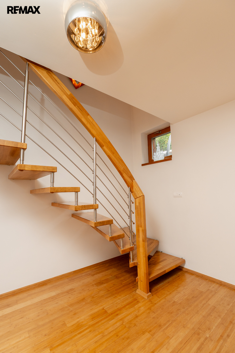 Veškerá sanita značky Villeroy & Boch je zárukou kvality a dlouhé životnosti. V celém domě jsou položeny kvalitní bambusové parkety.
