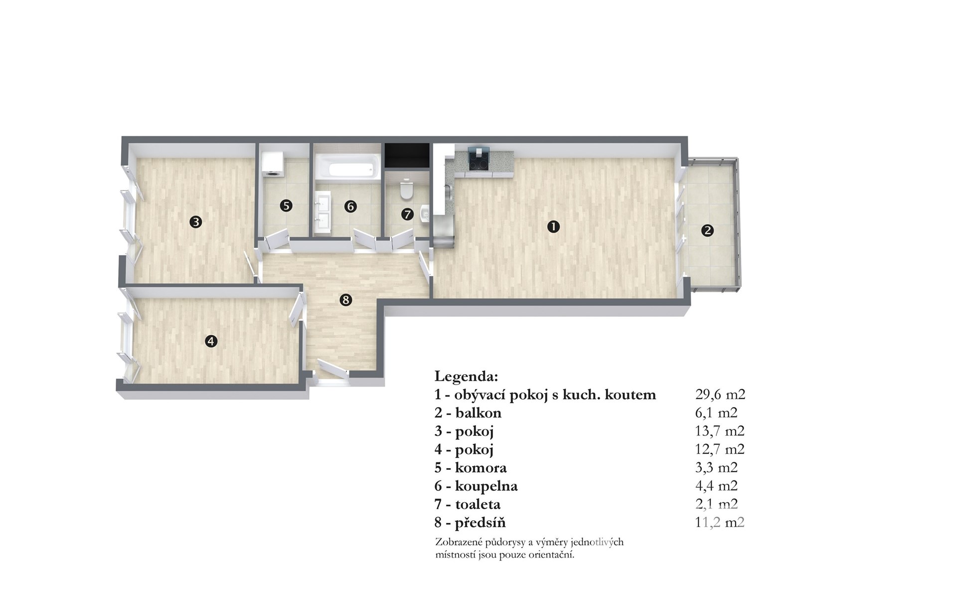| Dispozice/podlahová plocha: | 3+kk/82 m² |