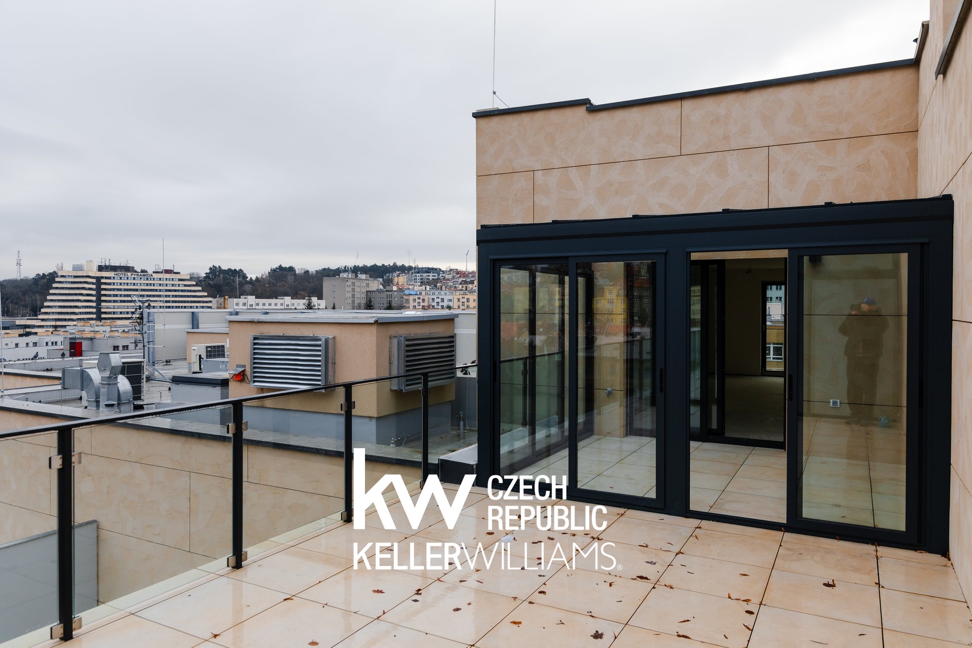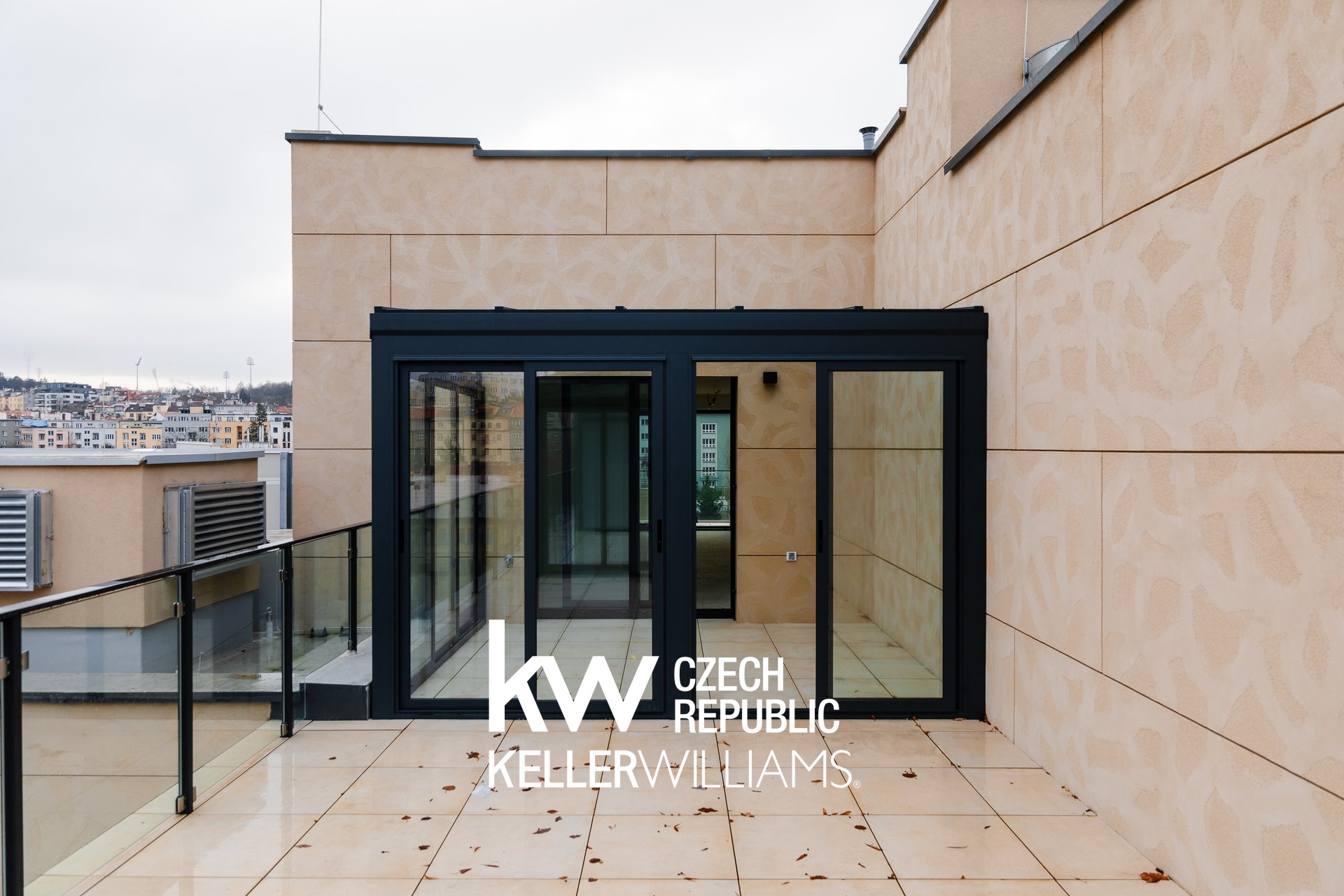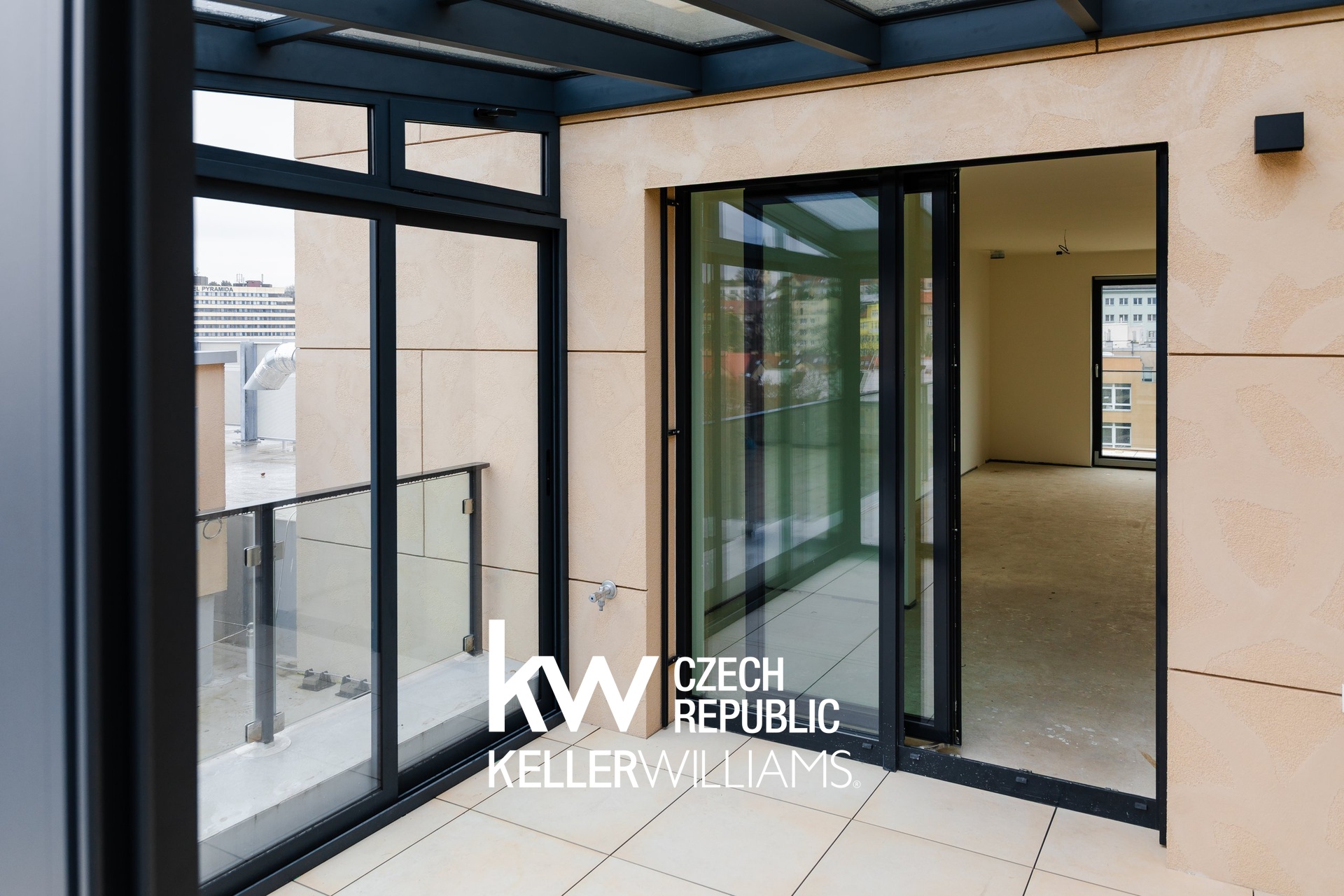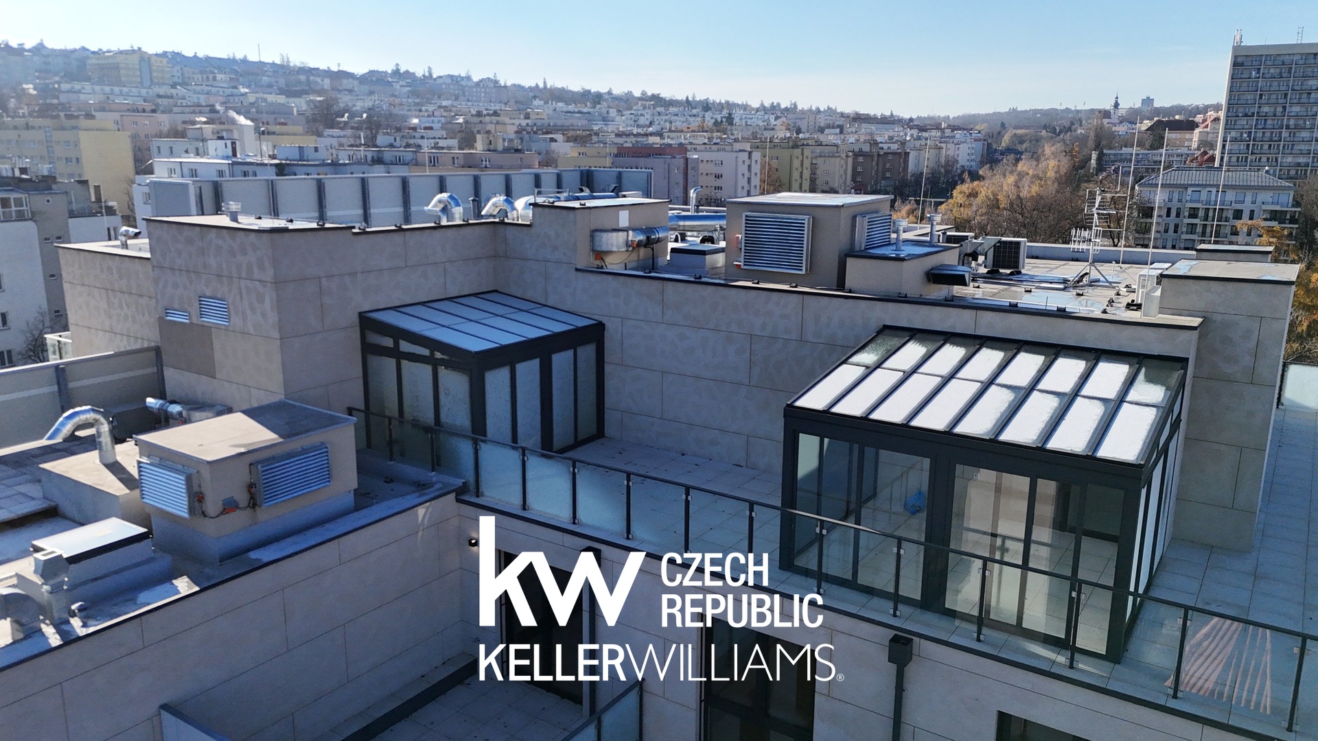 Prodej kanceláře v provedení shell & core, 154 m² plus dvě terasy, dva balkony, dvě parkovací místa,
