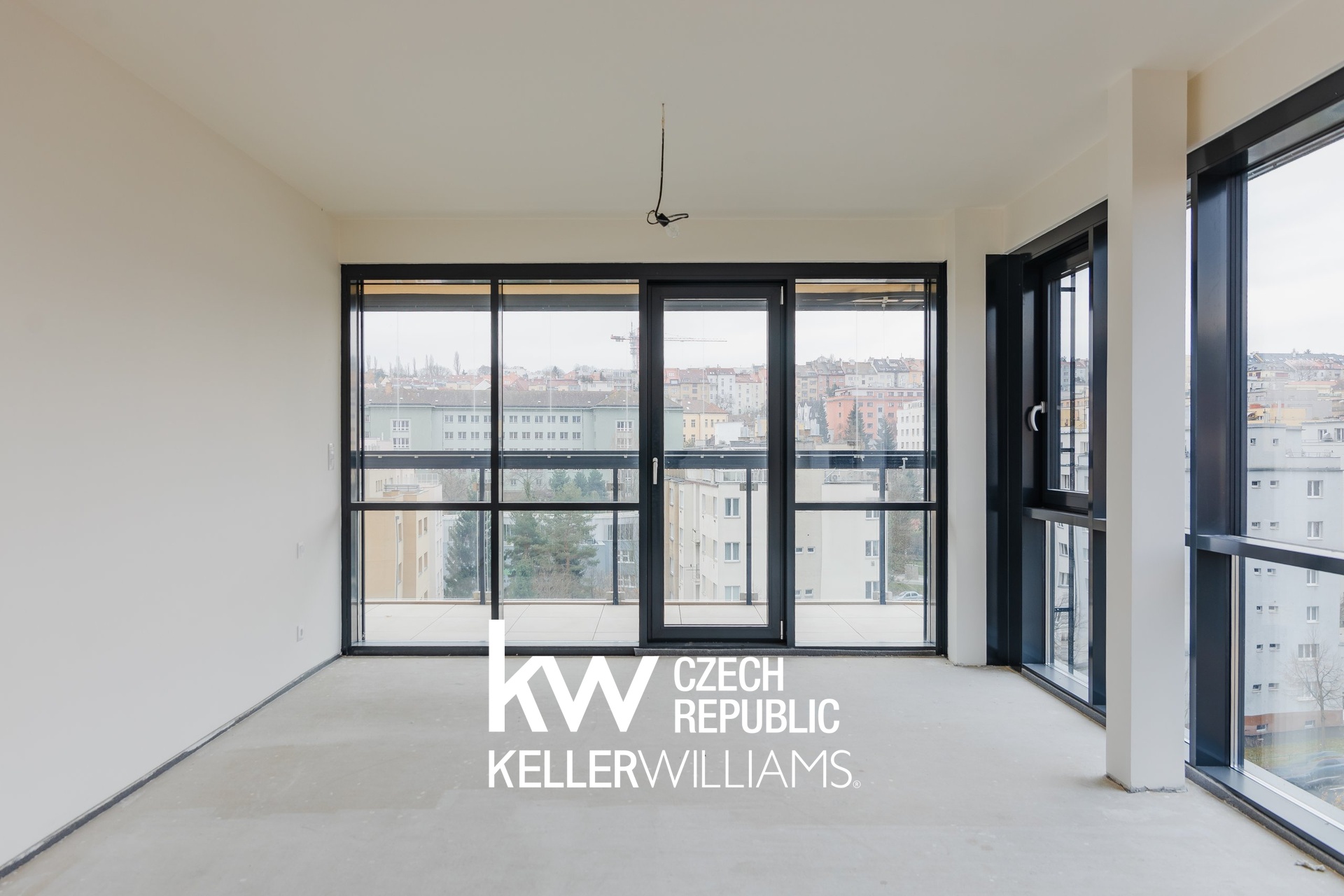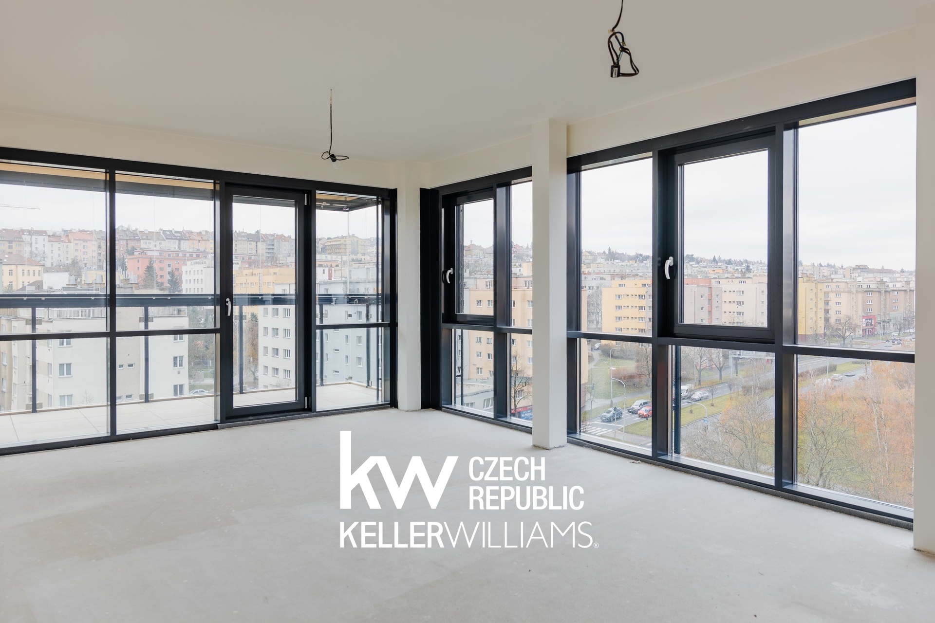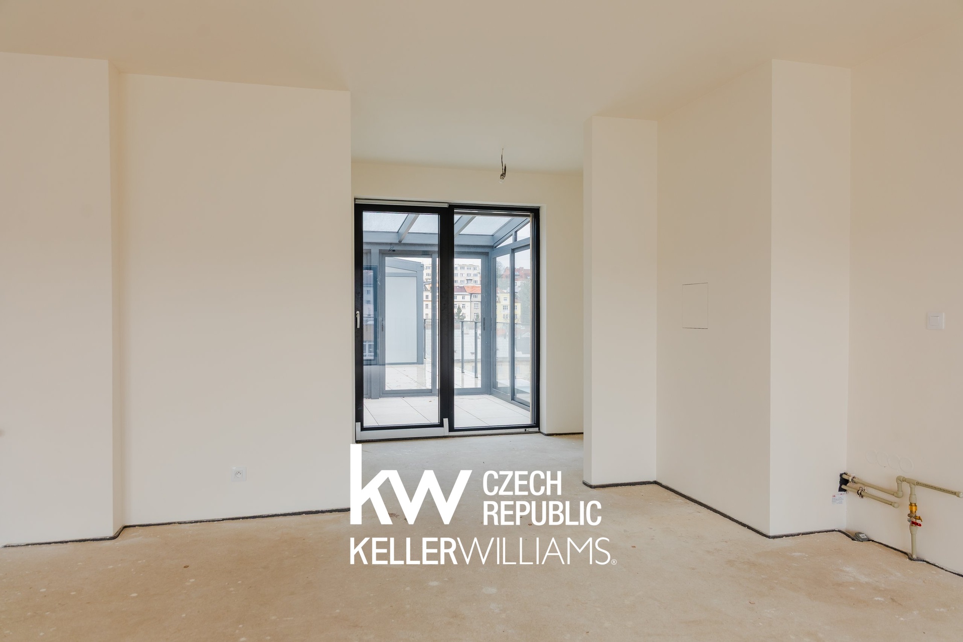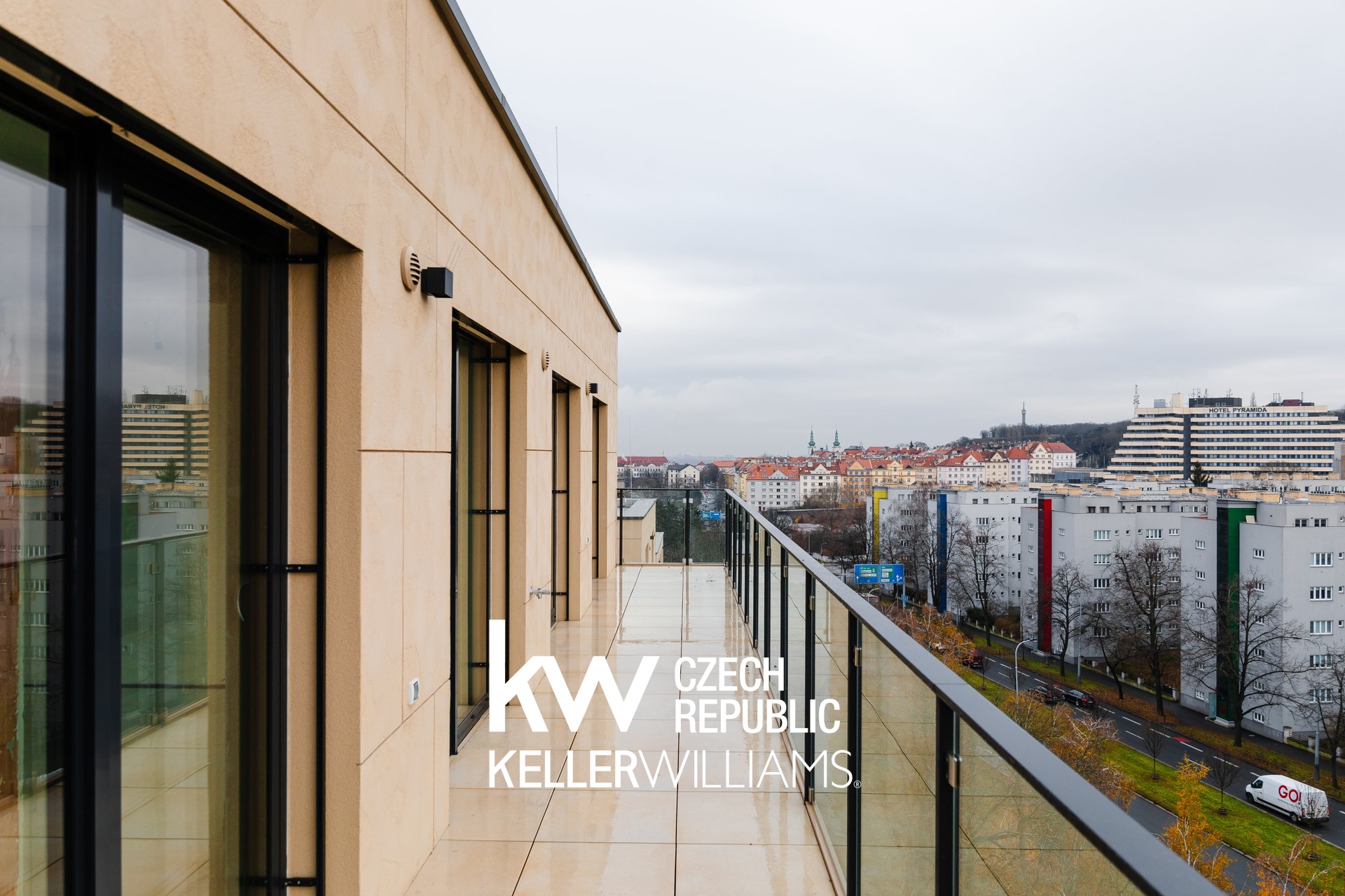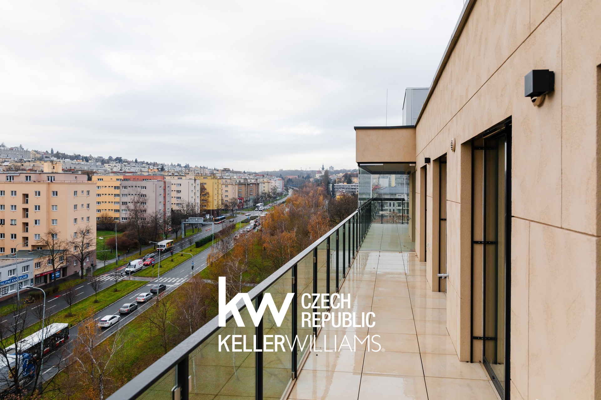 Prodej kanceláře v provedení shell & core, 154 m² plus dvě terasy, dva balkony, dvě parkovací místa,
