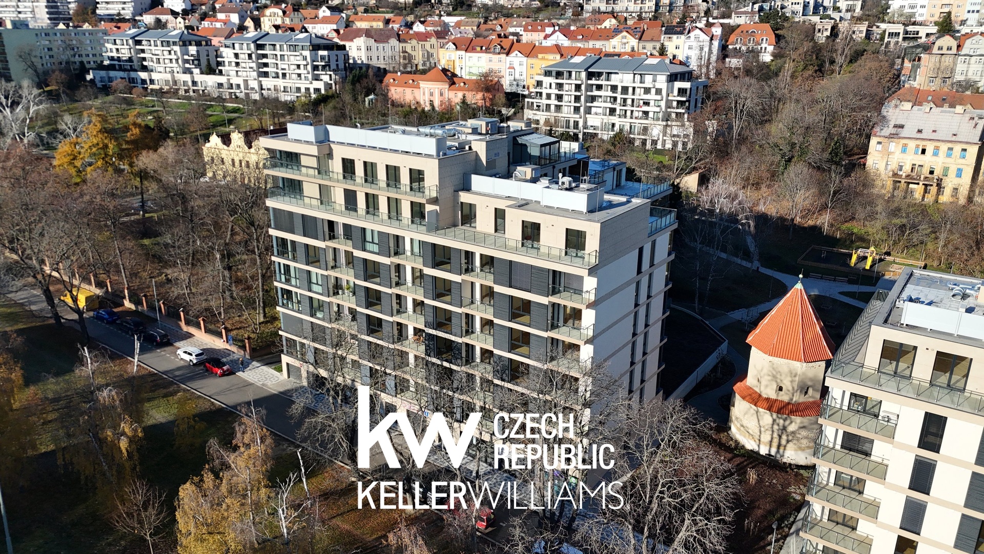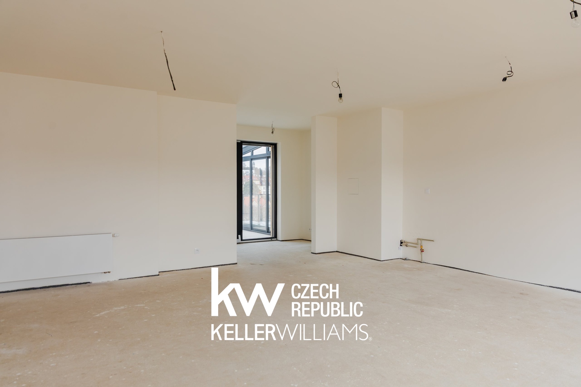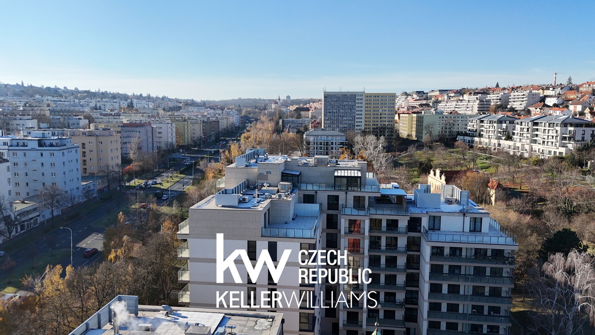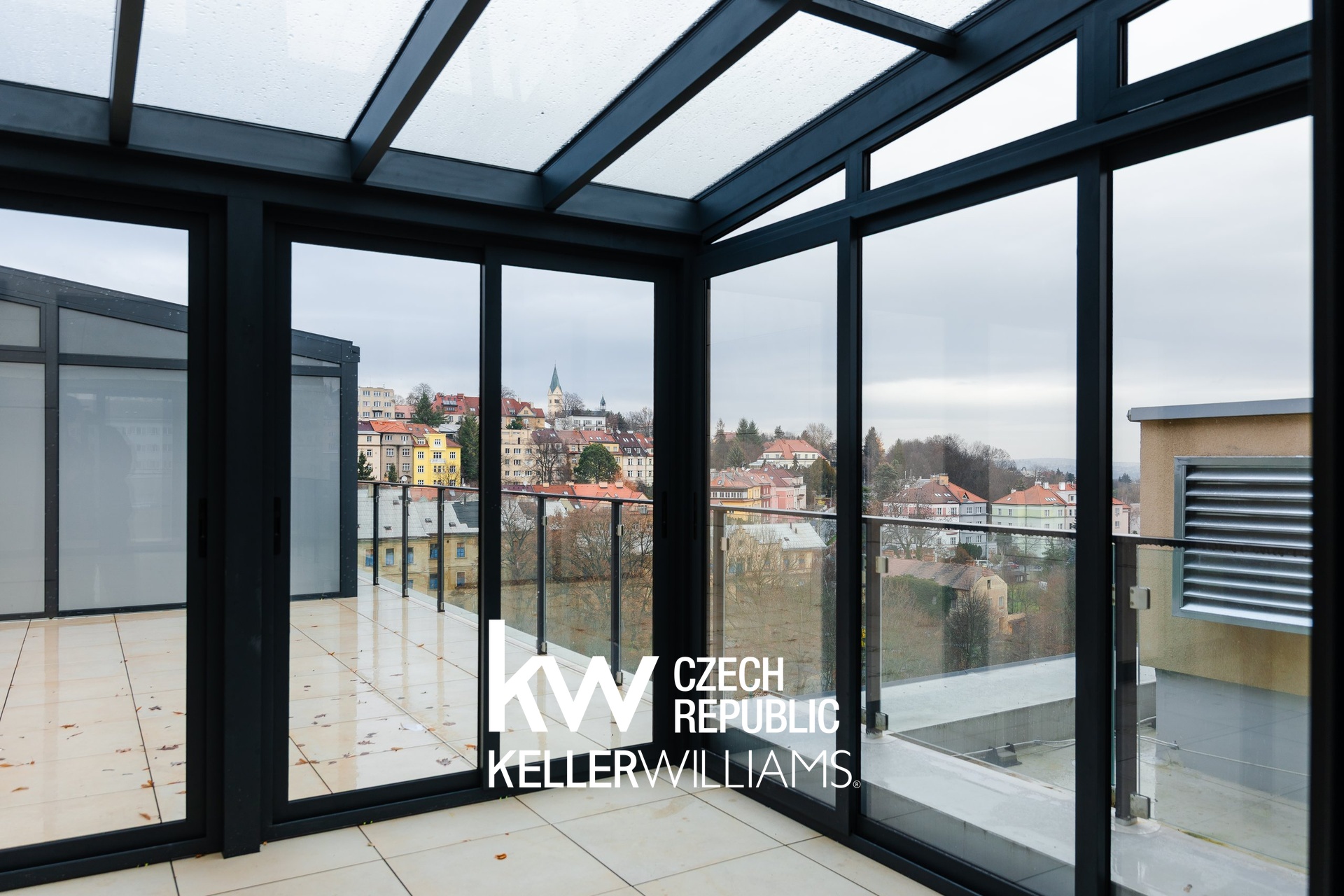 Prodej kanceláře v provedení shell & core, 154 m² plus dvě terasy, dva balkony, dvě parkovací místa,