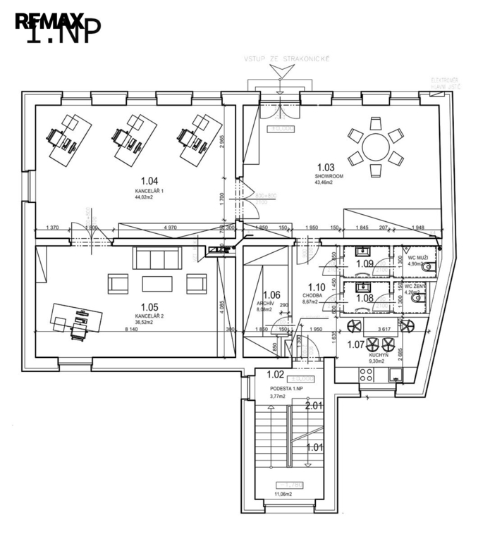 - Plocha kanceláří: 492 m²