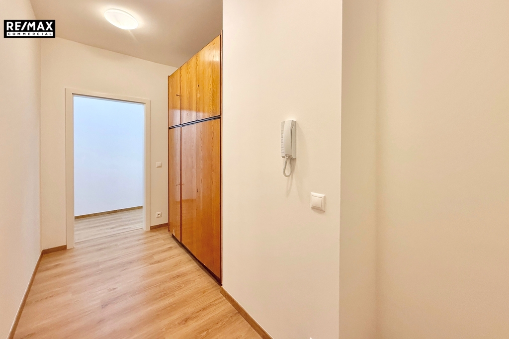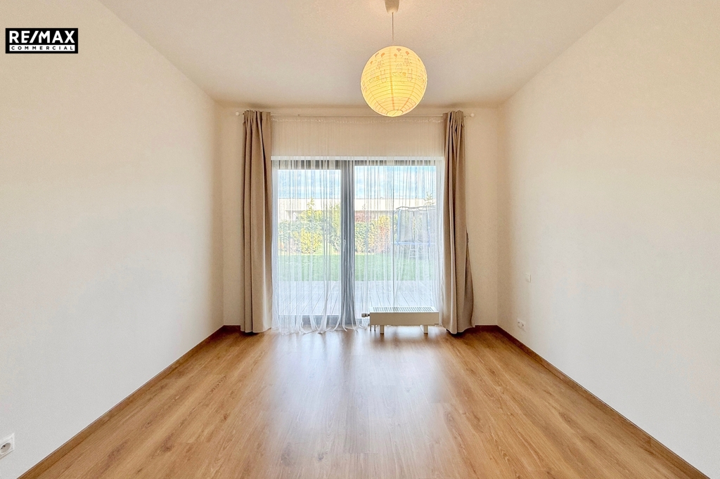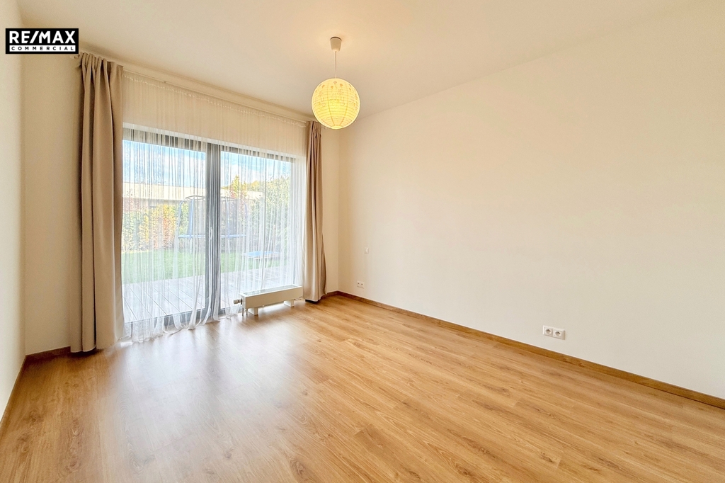 Součástí bytu je soukromá, pečlivě udržovaná zahrada s velkorysou terasou, která přímo vybízí k posezení s kávou, grilování s přáteli nebo odpočinku po náročném dni. Obývací pokoj i obě ložnice mají vlastní vstup na terasu a do zahrady. Dominantou bytu jsou velkoformátová francouzská okna, díky nimž je celý prostor krásně prosvětlený a působí útulně a vzdušně. Za vstupem Vás přivítá prostorná chodba s místem pro šatní skříň, naproti které se nachází pracovna.. Po pravé straně najdete koupelnu s vanou.