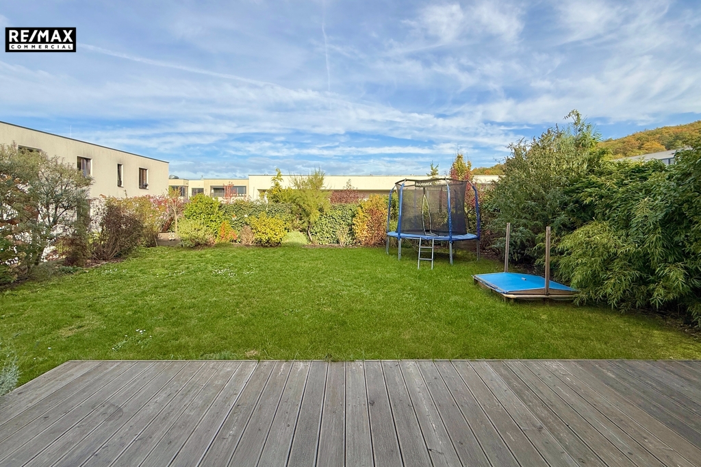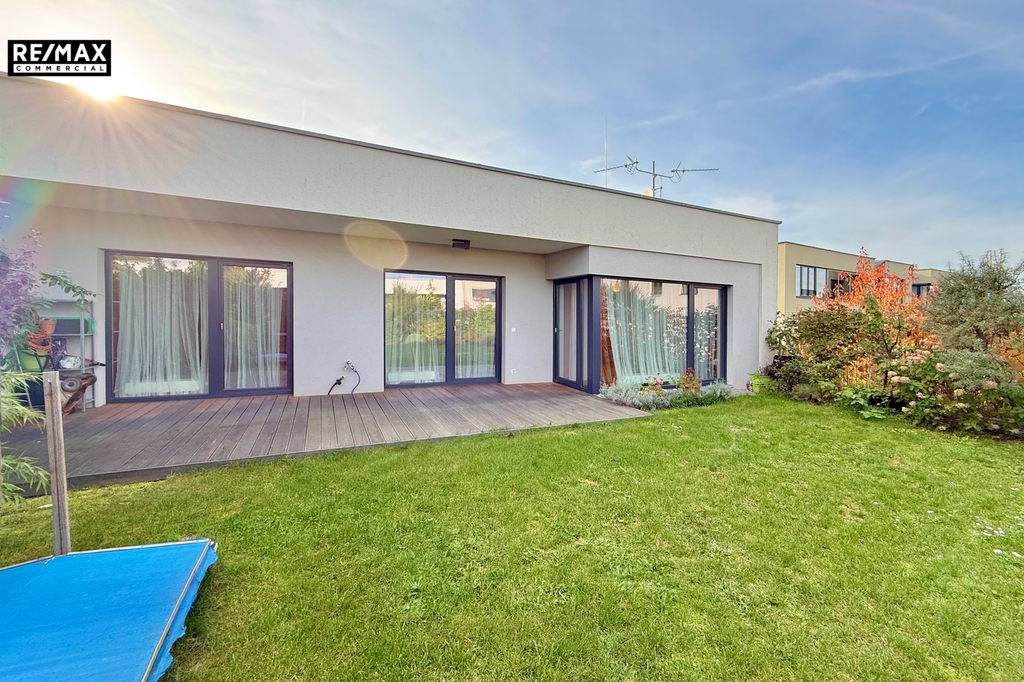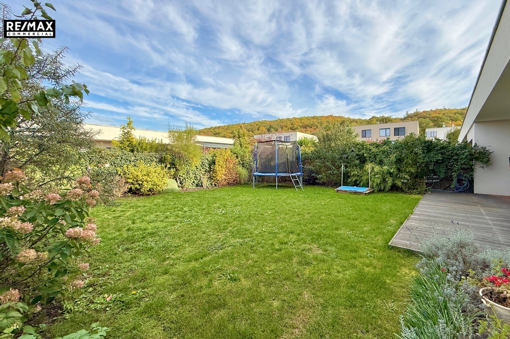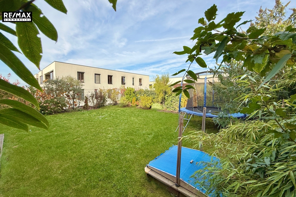Z obývacího pokoje vedou dva samostatné vstupy na terasu o výměře 20 m², odkud je přímý vstup na zahradu se vzrostlými keři a stromy, které zaručují naprosté soukromí. Centrální zatravněná část přímo vybízí k odpočinku, pikniku či hrám dětí. Na zahradě je k dispozici elektrická zásuvka i připojení na vodu.