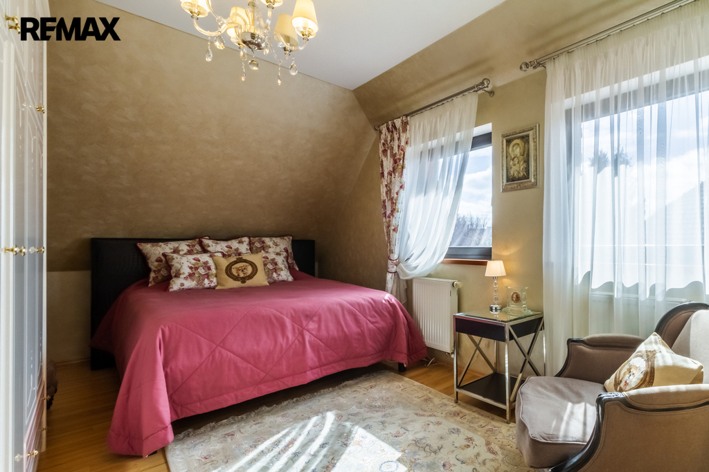 Patro o výměře 135 m² nabízí tři ložnice se vstupem na balkon, hlavní ložnici s vlastní šatnou, dvě koupelny se sprchovým koutem i vanou značky Villeroy & Boch s denním osvětlením, dále pracovnu a samostatnou prostornou šatnu.