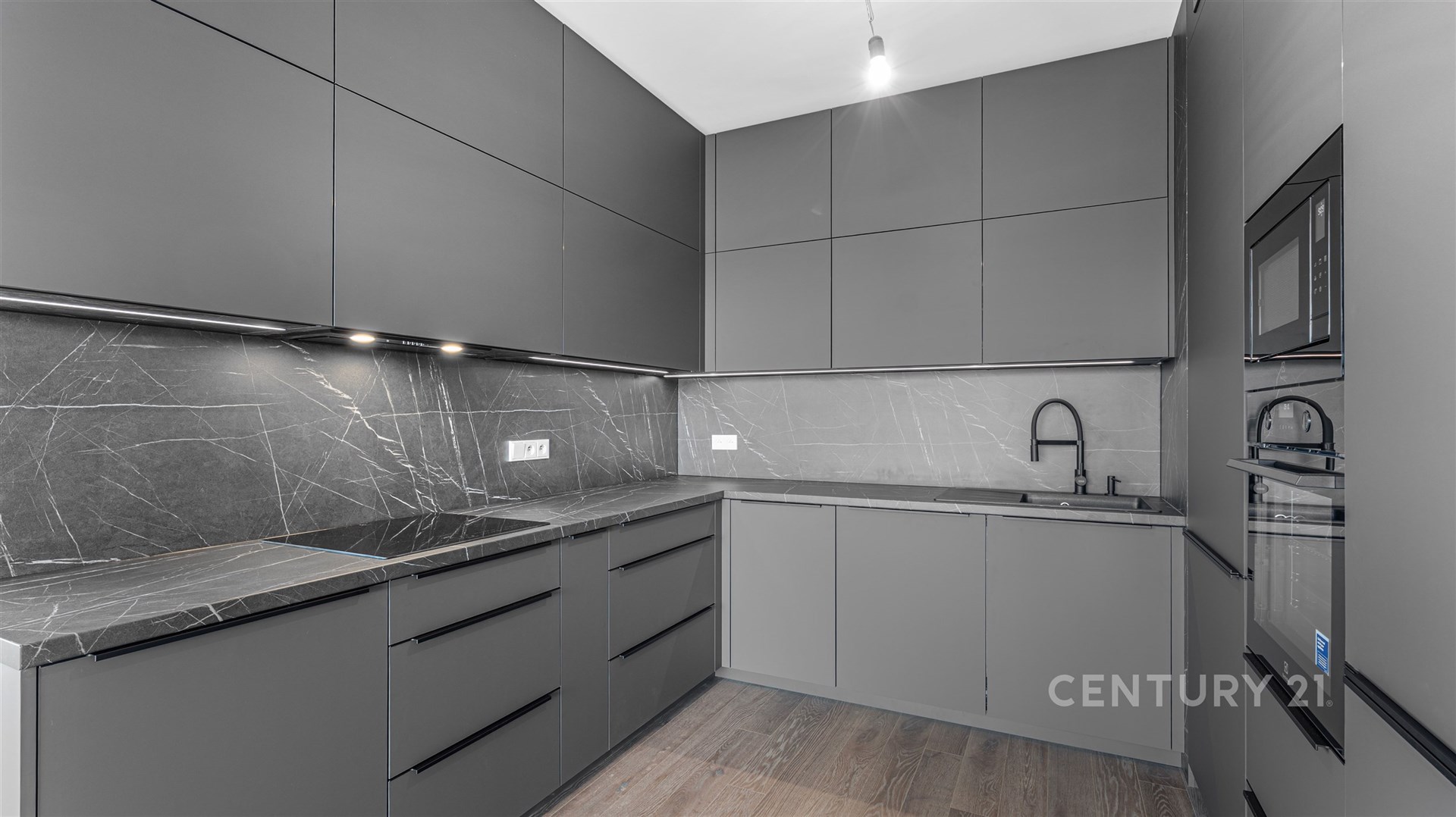 Interiér bytu definuje moderní kuchyňská linka zhotovená na míru v hodnotě přibližně 500 000 Kč, která je estetickým i funkčním centrem domova. Pocit luxusu dotvářejí dřevěné vyhřívané podlahy, klimatizace a velkoformátová trojskla, která do prostoru propouštějí maximum přirozeného světla, zatímco perfektně izolují okolní ruch. Z terasy se otevírá uklidňující výhled do zeleně, ideální pro ranní kávu nebo večerní relaxaci. Obrovským bonusem je pak společná střešní terasa o dvě patra výš – je to naprosto skvělé místo pro odpočinek nebo grilování s přáteli, které nabízí krásné výhledy do okolí.